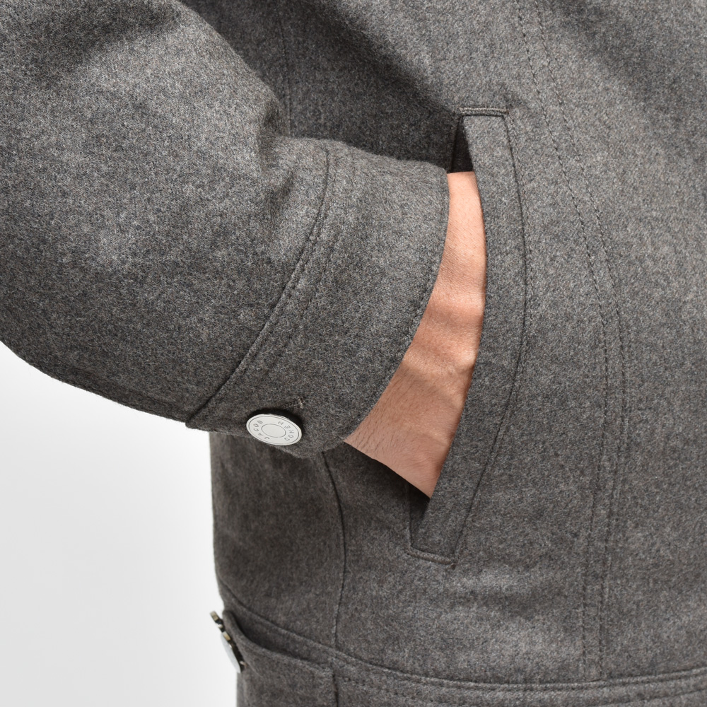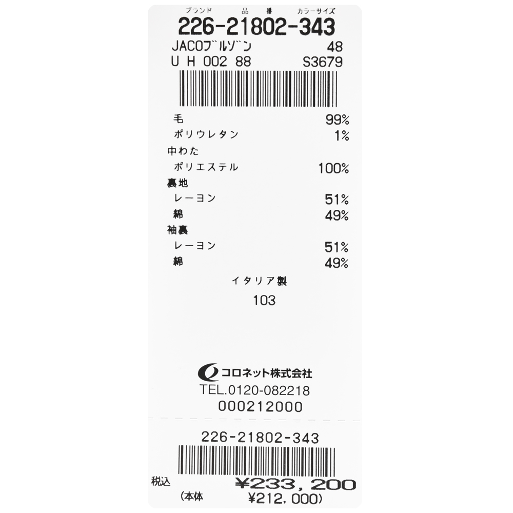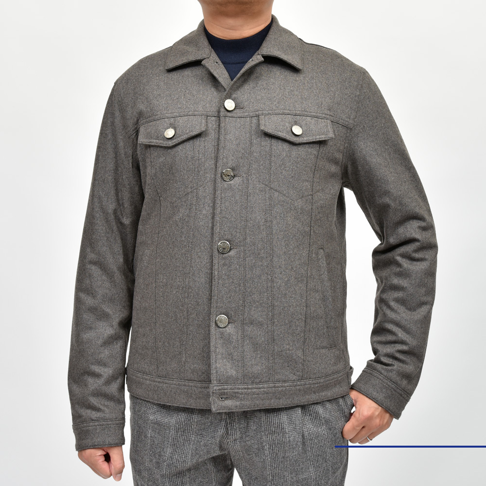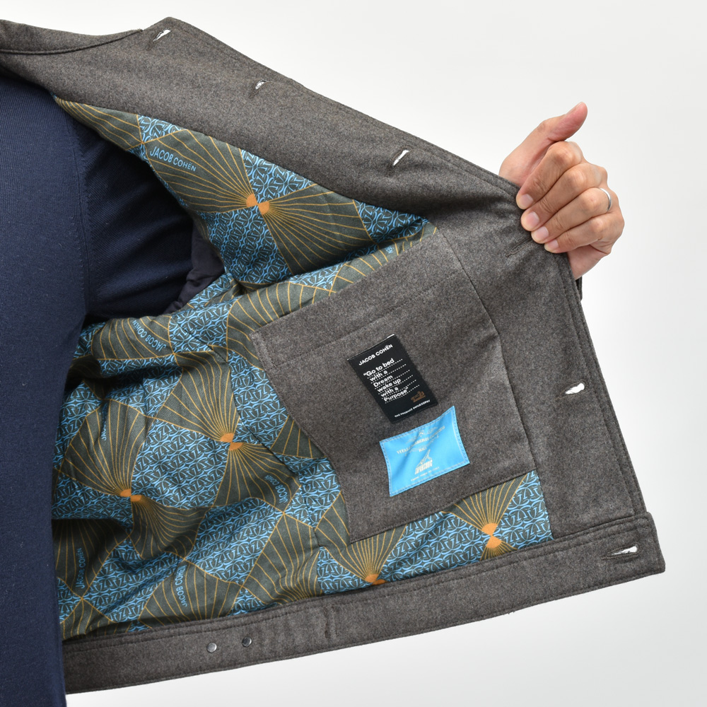 形は毎シーズン定番のトラッカータイプのブルゾンですが、保温性の高い中綿入りのウール地となるとJACOB COHENの中でも珍しい部類かと思います。