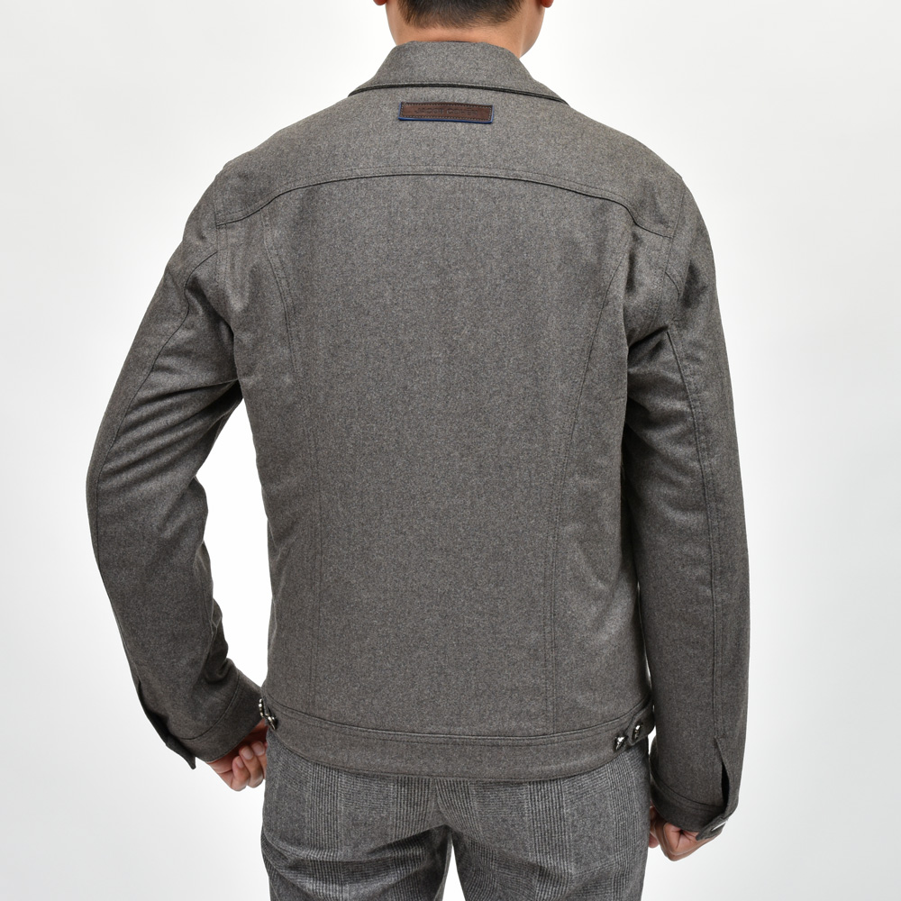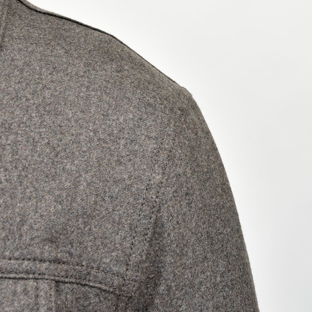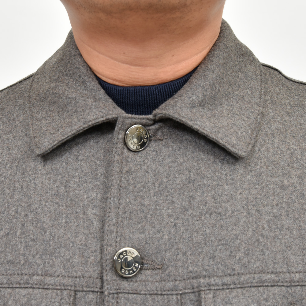 JACOB COHEN(ヤコブコーエン)の羽織と言えばやはりトラッカージャケットです。ベーシックなデニム生地のタイプもあれば、こういった特選の生地を採用したタイプも提案がされています。今回は名門CANONICOのSUPER SONICを採用、Super110’sの原毛を使用することでしなやかで高級感のあるタッチと見栄えを実現しています。