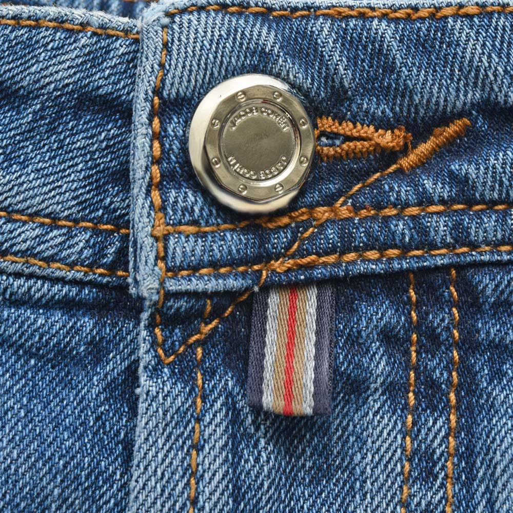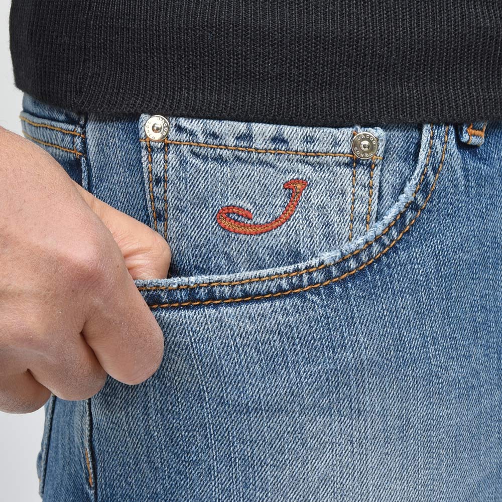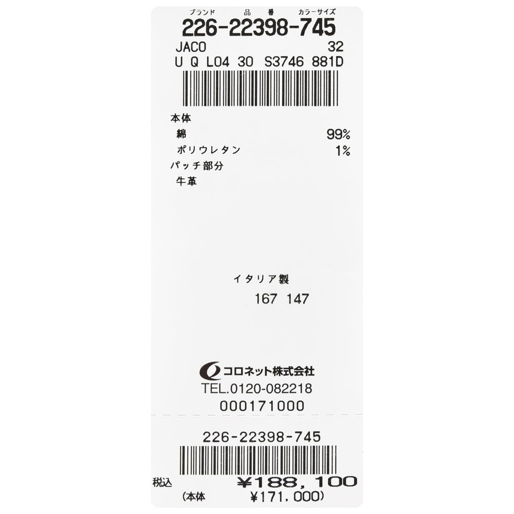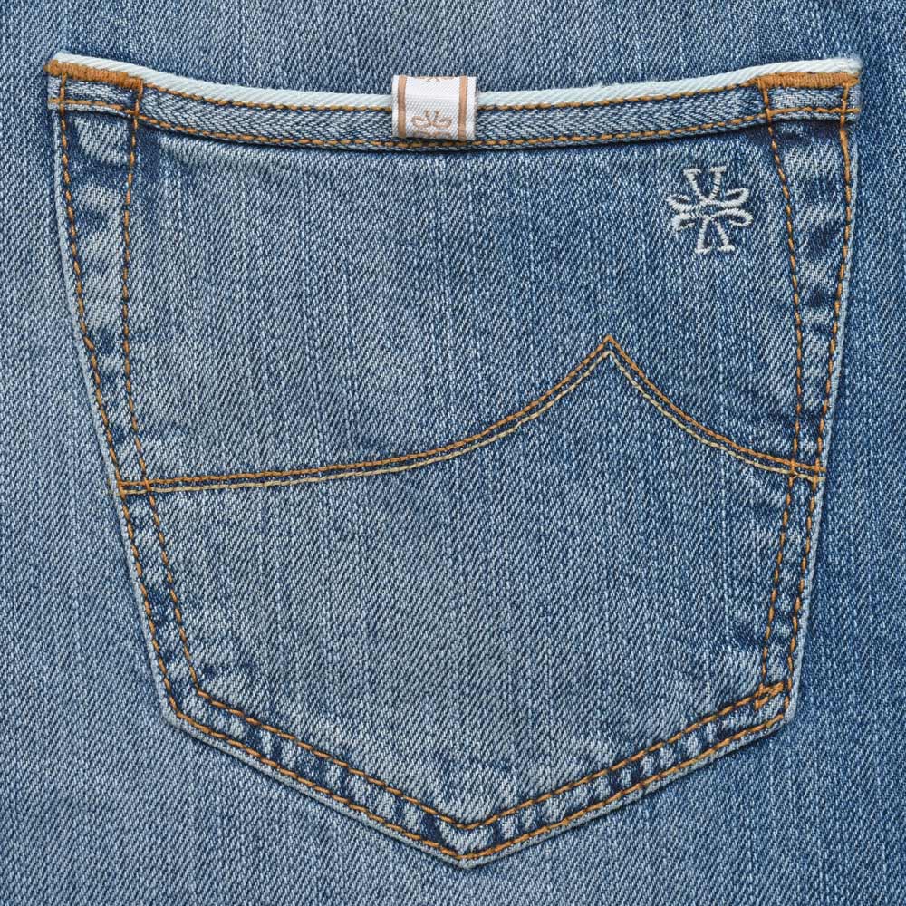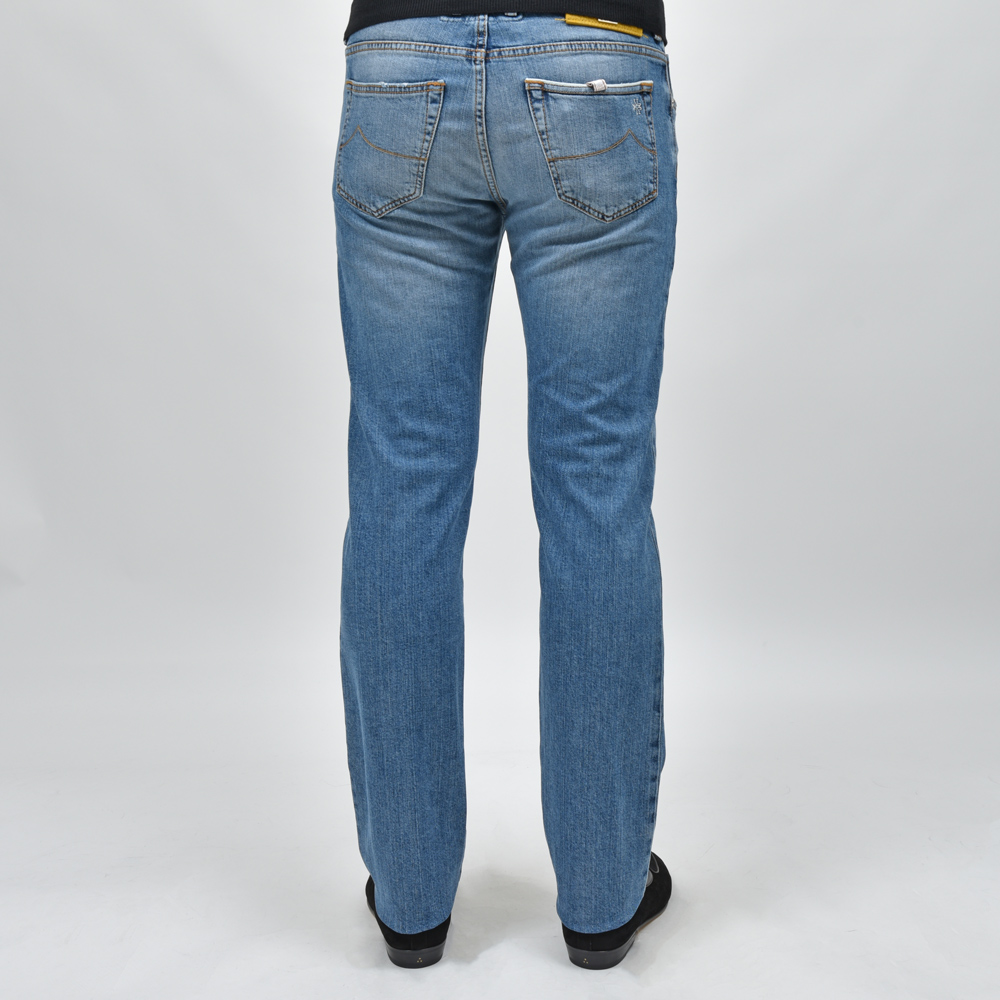 全体にまるで長年に渡って着古したかのような、コントラストをつけすぎない自然なウォッシュを施した一本。膝上辺りのフェード感も抜群に良く、ヴィンテージのような雰囲気がほんのり漂っています。しかしそれで満足しないのがJACOB COHEN(ヤコブコーエン)の魅力です。特に人気の高いモデルであるBARDは足をすっきりと見せてくれるテーパードが効いたスリムシルエットを採用していますので、この雰囲気でありながらイタリアらしい美意識をしっかり備えた、イタリアファッション好きとデニム好きのどちらの方でも納得できるであろう高い完成度を誇ります。
