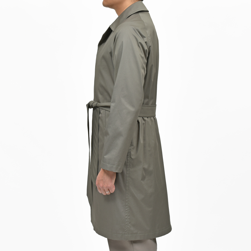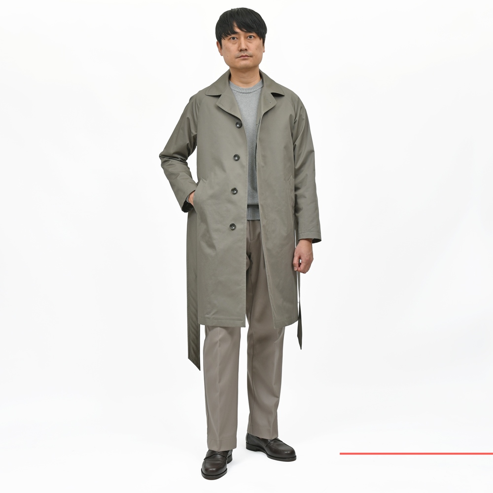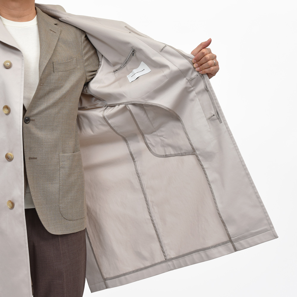 スプリングコートとして最適な、ライトウェイトのコットンギャバジン、着心地を考慮してストレッチタイプをセレクトしています。