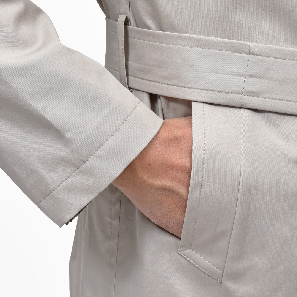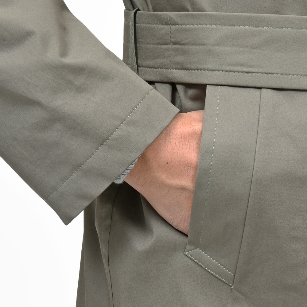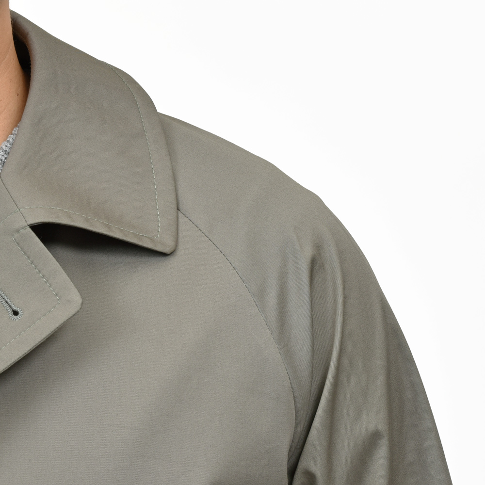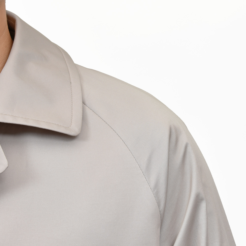 スプリングコートとして最適な、ライトウェイトのコットンギャバジン、着心地を考慮してストレッチタイプをセレクトしています。