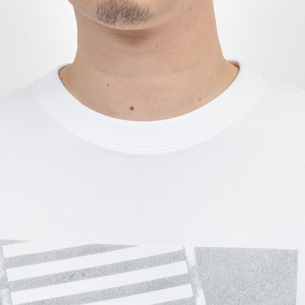 シルエットは従来通り程よく緩やかになっていまして、タイトフィットなシャツやジャケットでなければスムーズにインナーとしてもお使いいただけるタイプに。また生地感も上質かつしっかりとしたタイプになっていますので、洗い込んでプリントが掠れたり、生地がクタッとしてきてもさまになってくれる一着です。