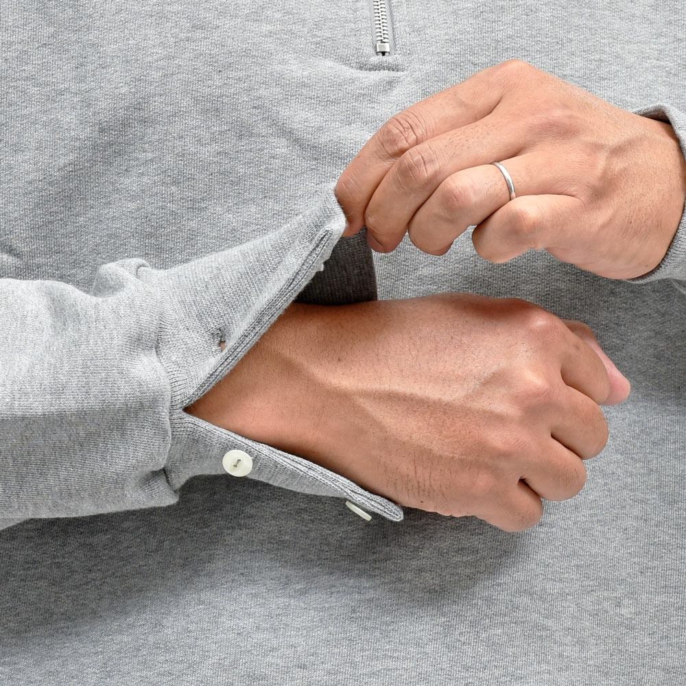 ELACIO(エラシオ)のハーフジップスウェットCherシェール、昨年から取り扱いをスタートしましたが、フランス製らしい雰囲気と気の利いたディティールで密かなヒットアイテムとなりました。