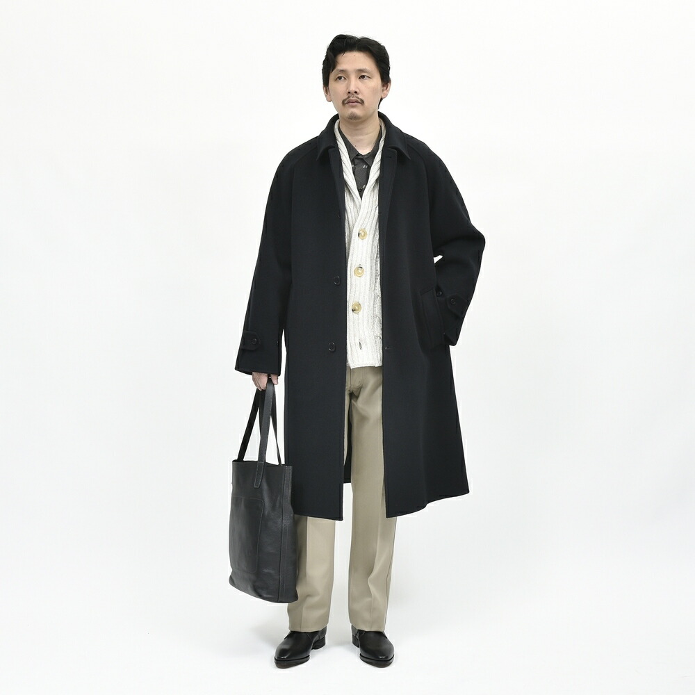 極めて品のあるダブルフェイスビーバーの生地にmandoらしい優雅さを感じさせるシルエットの組み合わせ、これ以上足しても引いても良くない絶妙なバランス感で成り立っています。