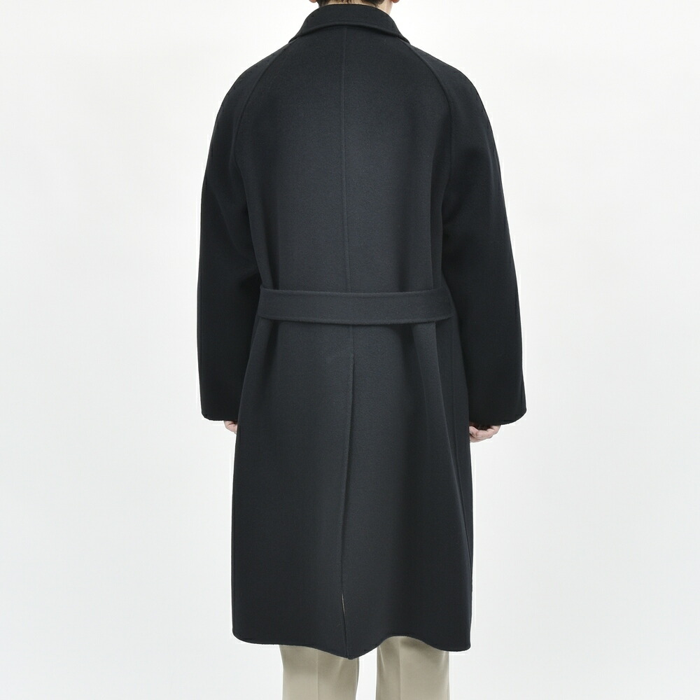 ベルト部分のバックルが表に見えないような構成になっているのもポイント、ミニマルで洗練された印象を付加してくれるコートになっていると思います。