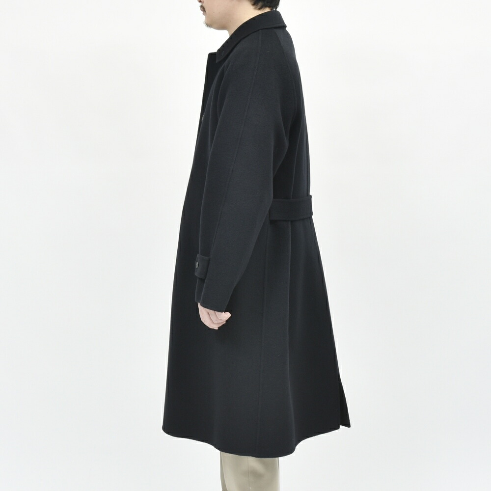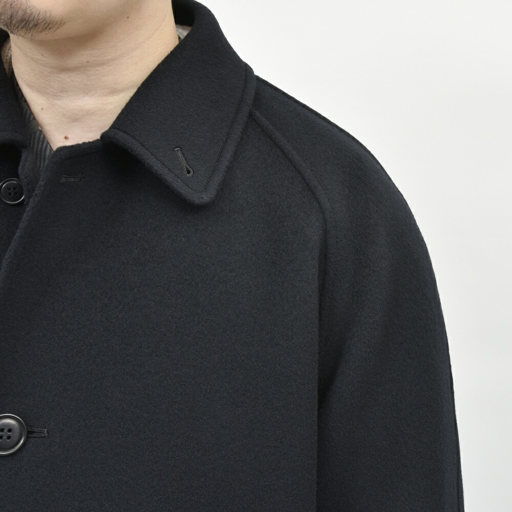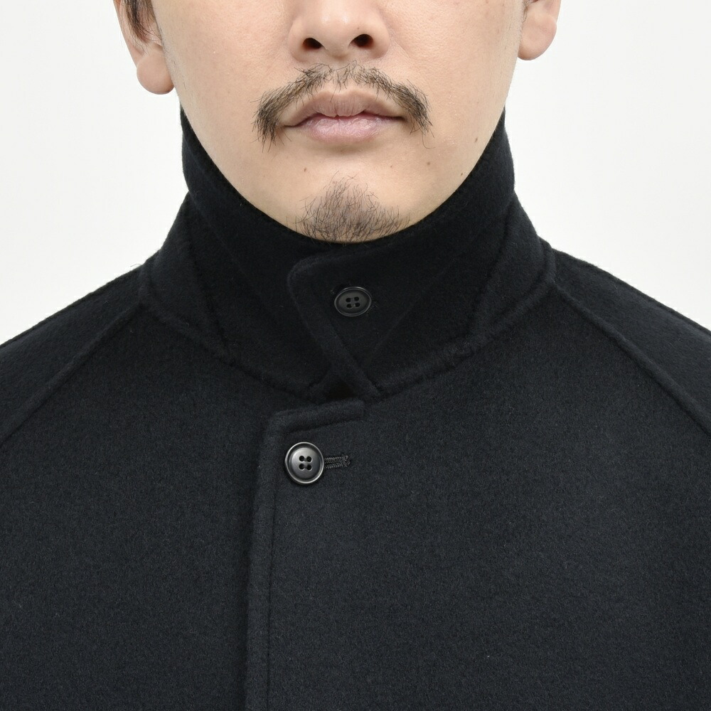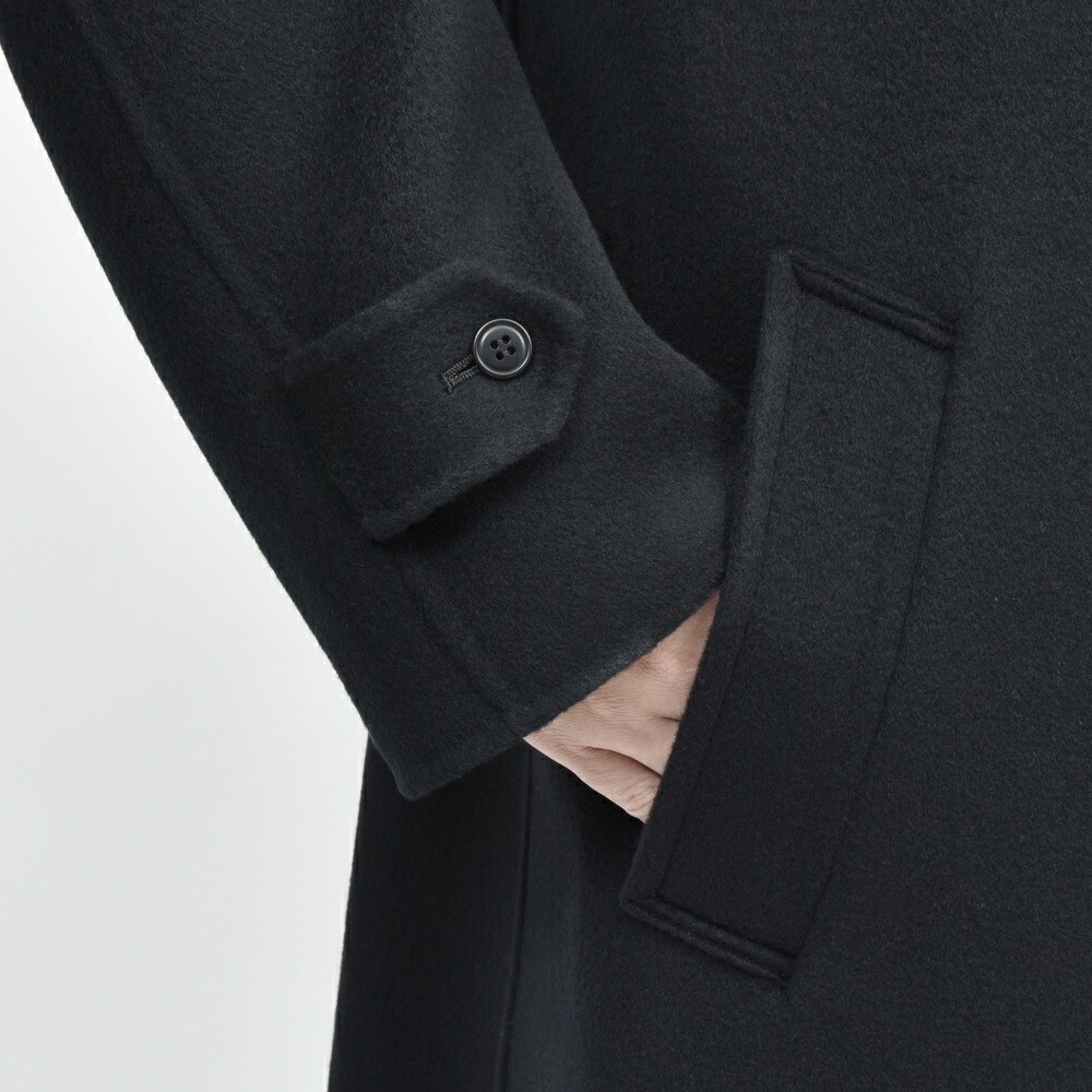 上質なウールカシミアのダブルフェイスビーバーを用い、リバー仕立てにすることで縫製部分を極力軽く、裏地も用いずすっきりと仕上げています。