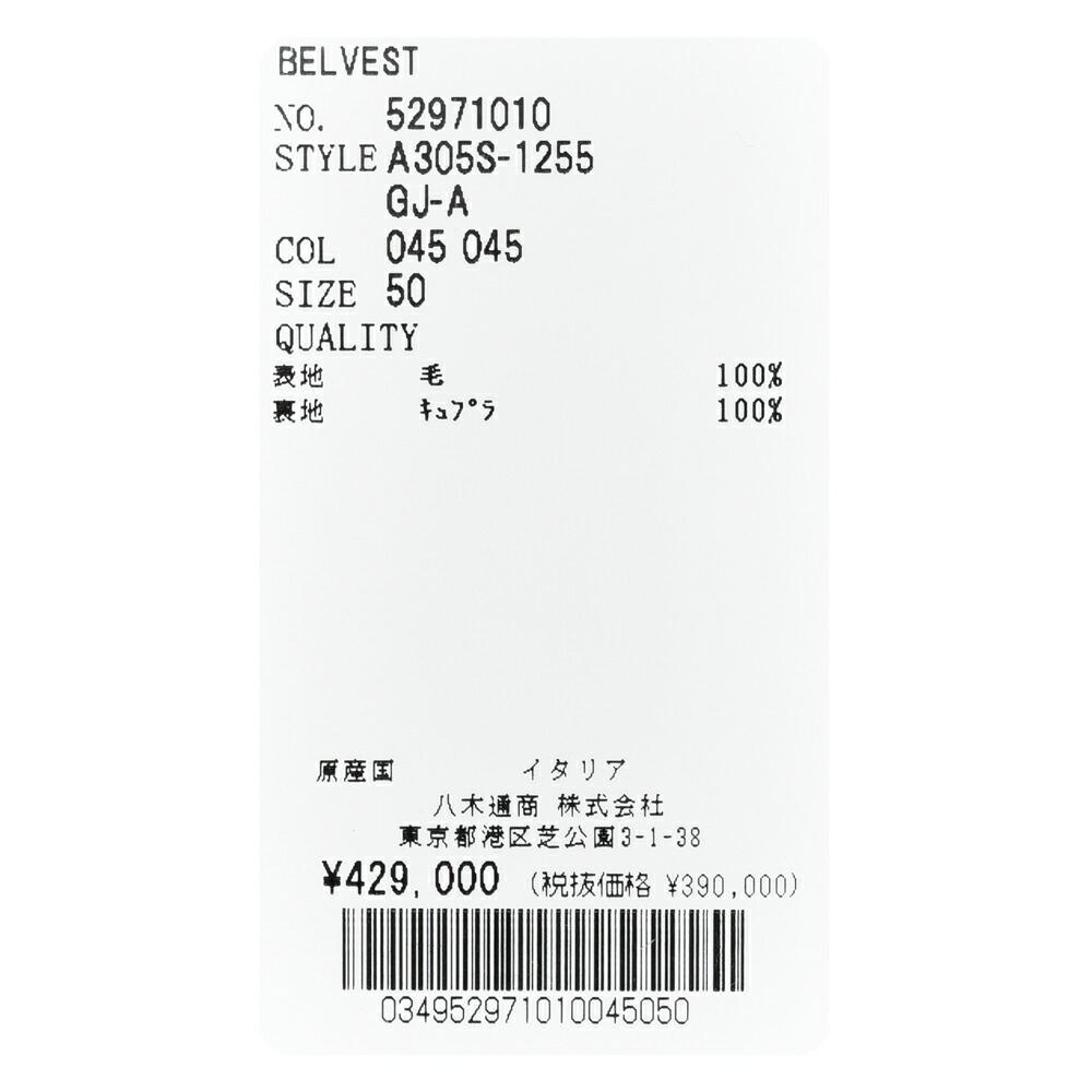 BelvestのA305Sモデルのスーツは、纏う度に高揚感に満たされて、最高の着心地を感じられる、Belvestの真価を体感できる一着です。
