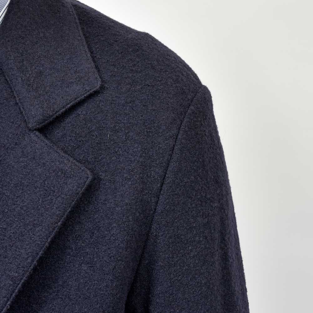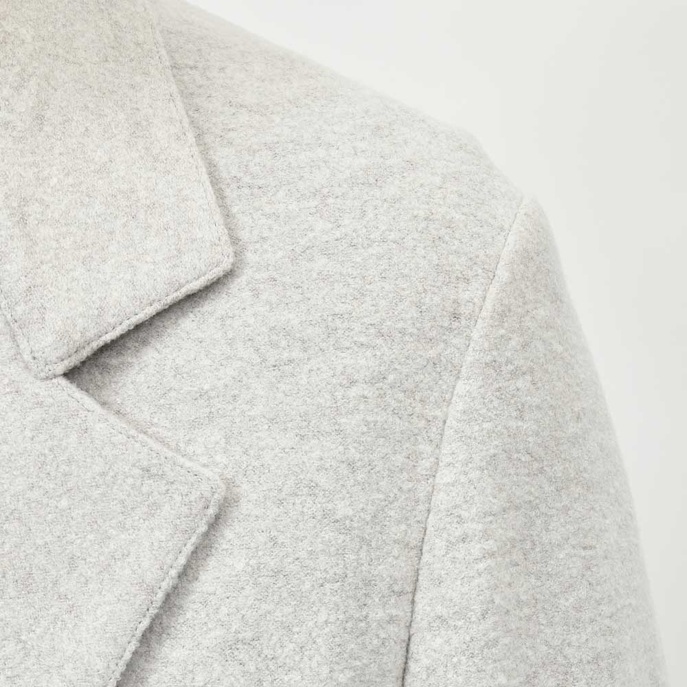 シルエットはリラックス感のあるややボクシーなタイプに。ラペルは広め、ゴージ位置は低めにすることで気負わずサラッと着用できるバランスになっています。
