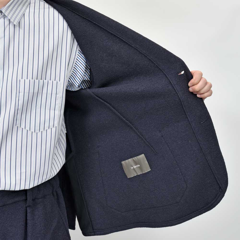 ジャケットという普遍的なアイテムにla favola(ラファーヴォラ)らしい遊び心を含ませた一着なっています。