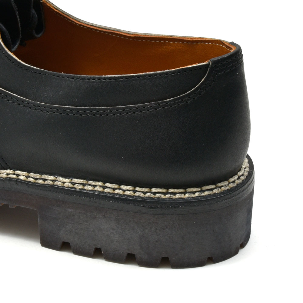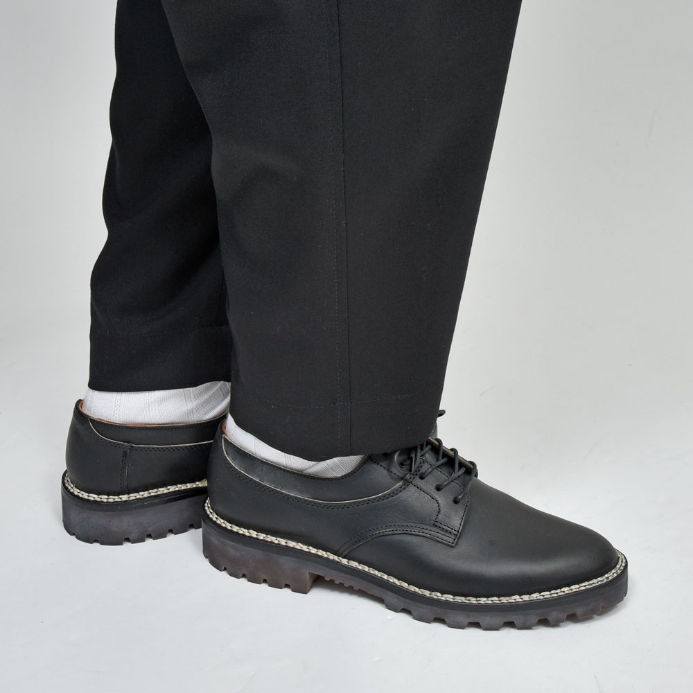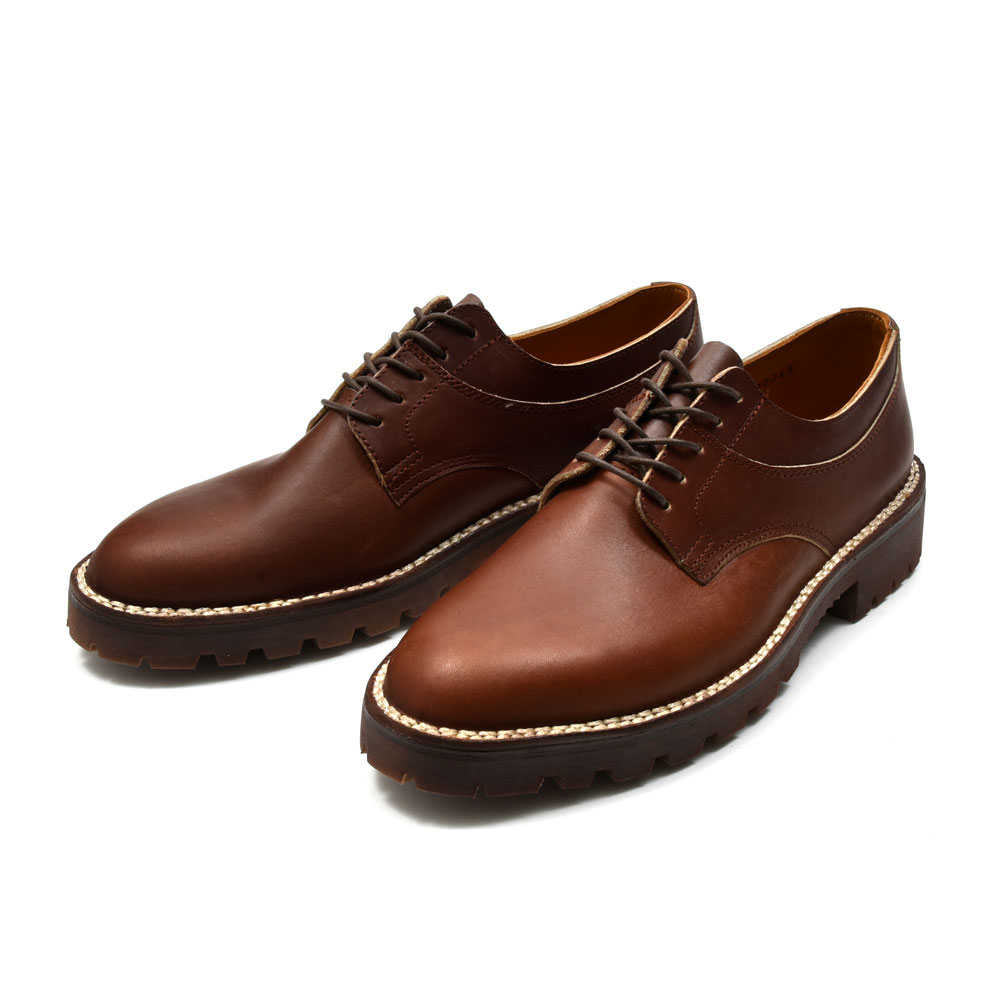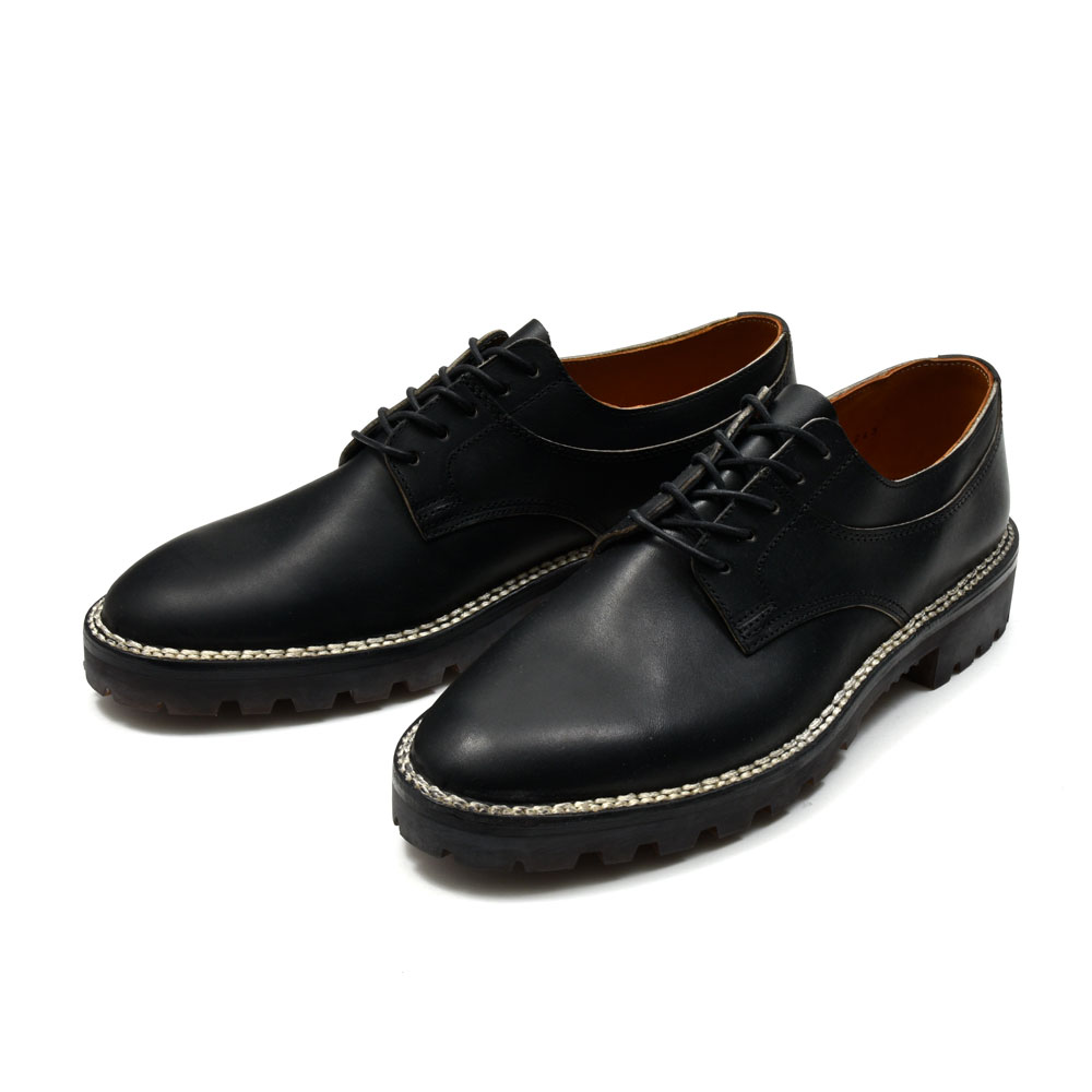 今回セレクトしたのはダービーシューズ、シルエットは比較的シャープになっていまして、やや甲も低め、こういったところにもフランスのムードが感じられます。製法はダブルステッチダウンを採用、雨に強く柔軟性も備えているため日常使いにもぴったりではないでしょうか。
