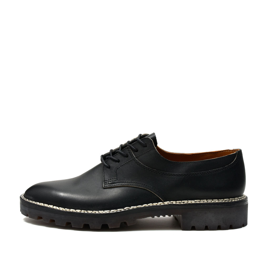 少しオリジナリティが加えられたダービータイプでトゥがすっきりとしてるのでモダンな見え方。ポッテリしないところがヨーロッパらしく洗練されています。
