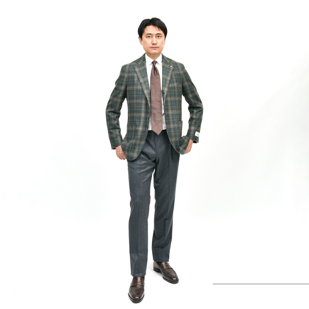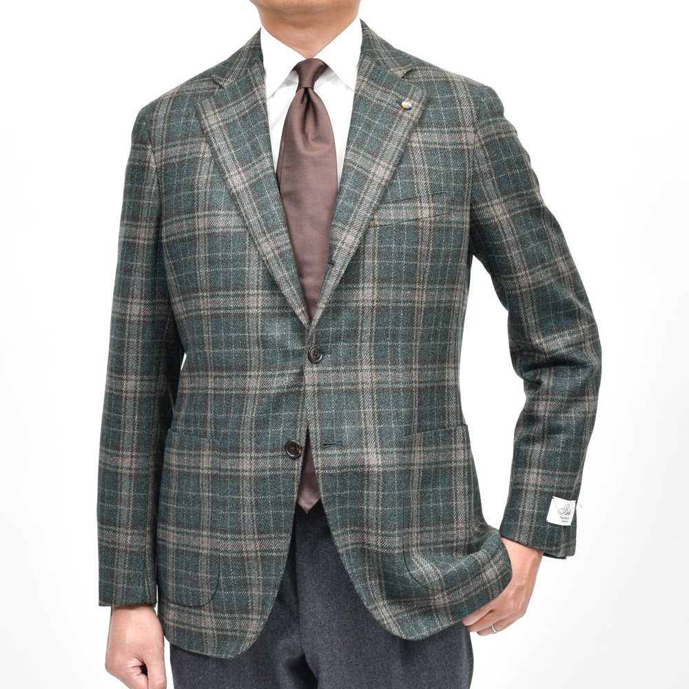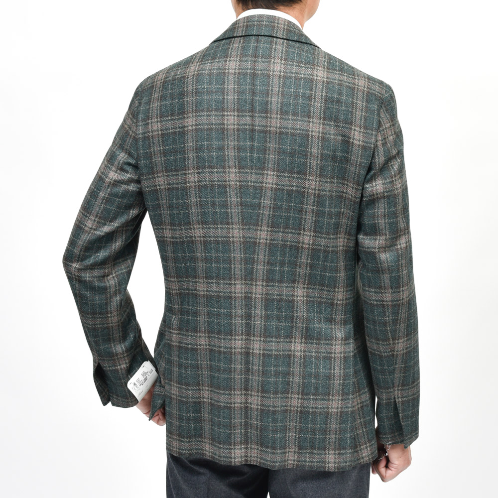 なかなかマニアックな一着とは思いますが、オーダー以外では出回りにくいタイプですね。グリーンを基調としたアーシーなスタイルでも都会的に見せてくれるジャケットだと思います。
