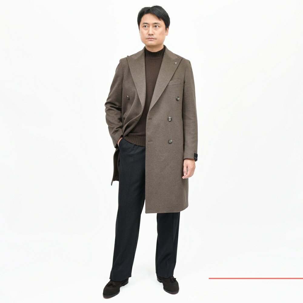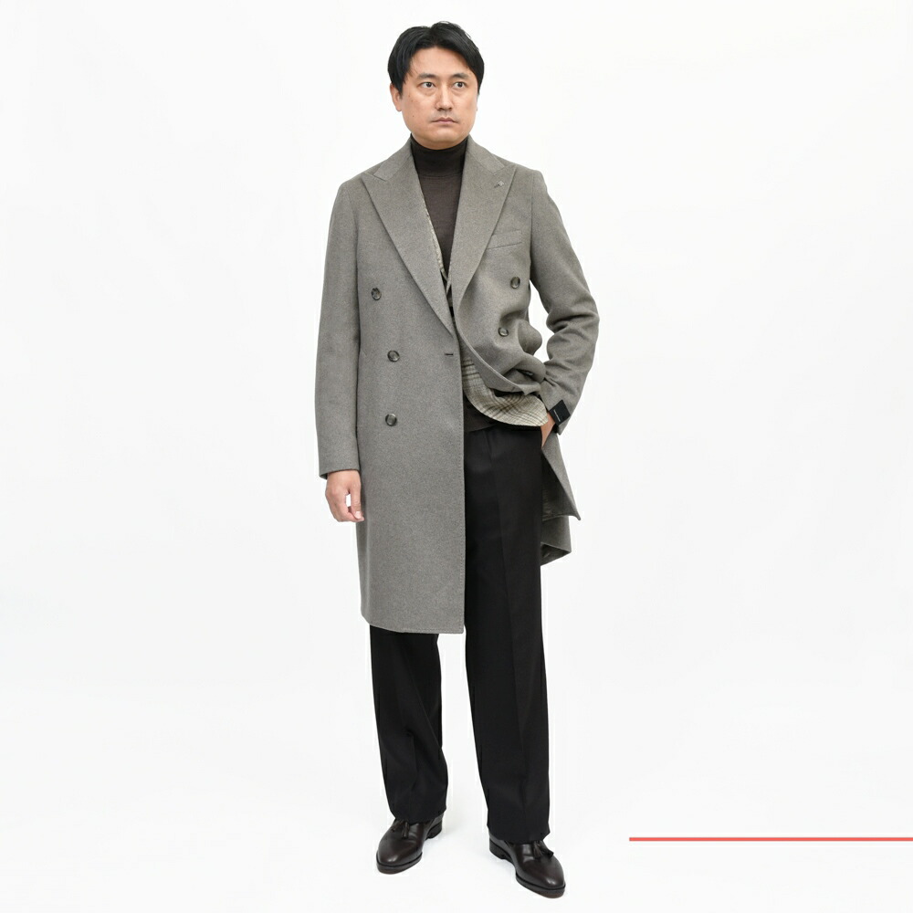 『スーパーなコートです。』 TAGLIATORE(タリアトーレ)のチェスターコート、別注仕様のダブルブレストも定番アイテムとしてご用意しています。 gujiが考える別注はワンシーズン限りではなく、トレンドに左右されず何年も着続けられるようにデザインしており、どんなシーンやスタイルでも古く見えず、モダンさを漂わせることが出来るように調整しています。 過度にデザインを施すわけではなく、シルエットのバランスやレングス感、着用時の快適性など総合的に整えることで完成しているコートでして、「一見普通に見えて凄く良い」という感覚を多くの方に感じて頂ける仕上がりを目指しました。 今シーズンからあらためてカシミアファブリックにもフォーカスを当て、オーダーをしています。 カシミアならではのタッチ、色出し、着用感、そして所有する満足感。機能性もさることながら、着ることの喜びをストレートに感じて頂ける一着に仕上がりました。 (画像のスタッフは182cm、76kgで50サイズを着用しています。) ・モデル:C-GUJI 日本人の体格にアジャストしたオリジナルシルエット。着丈の長さ、肩幅、前身後身の幅、袖付けを前肩気味に調整。 ・ファブリック:フランネル カシミア100% 440g/m ・カシミアならではの軽やかさと優雅なタッチ ・フロント6ボタン・腰縦ポケット・胸バルカポケット・内ポケット左右 ・ラペル巾:11cm ・袖:アンフィニッシュド(本切羽・開き見せなどの釦付け修理が必要) |