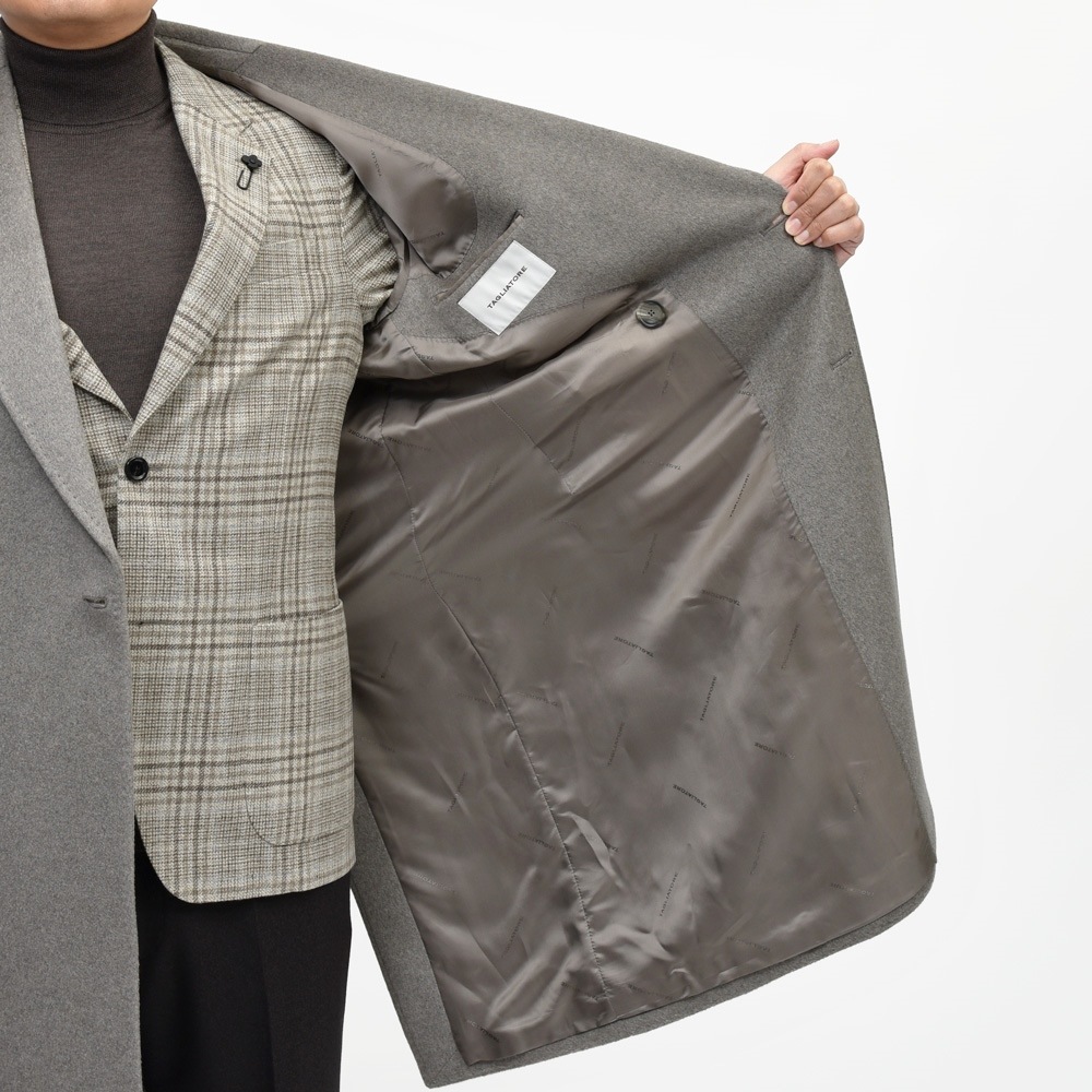 カシミアにしか出せない味があるといいますか、ムードがあるといいますか、上質なウールももちろん素敵ですが、プライスはさておきベクトルが違うエレガンス、優雅さがありますね。 コートは生地面積が広く、特にダブルブレストはフロントの打ち合わせが深いので、生地の雰囲気が全体に与える影響が大きいんです。 よりラグジュアリーに、優雅にコートを着たい方はカシミアを是非選択肢に入れて頂ければと思います。 スタッフ 西出 |