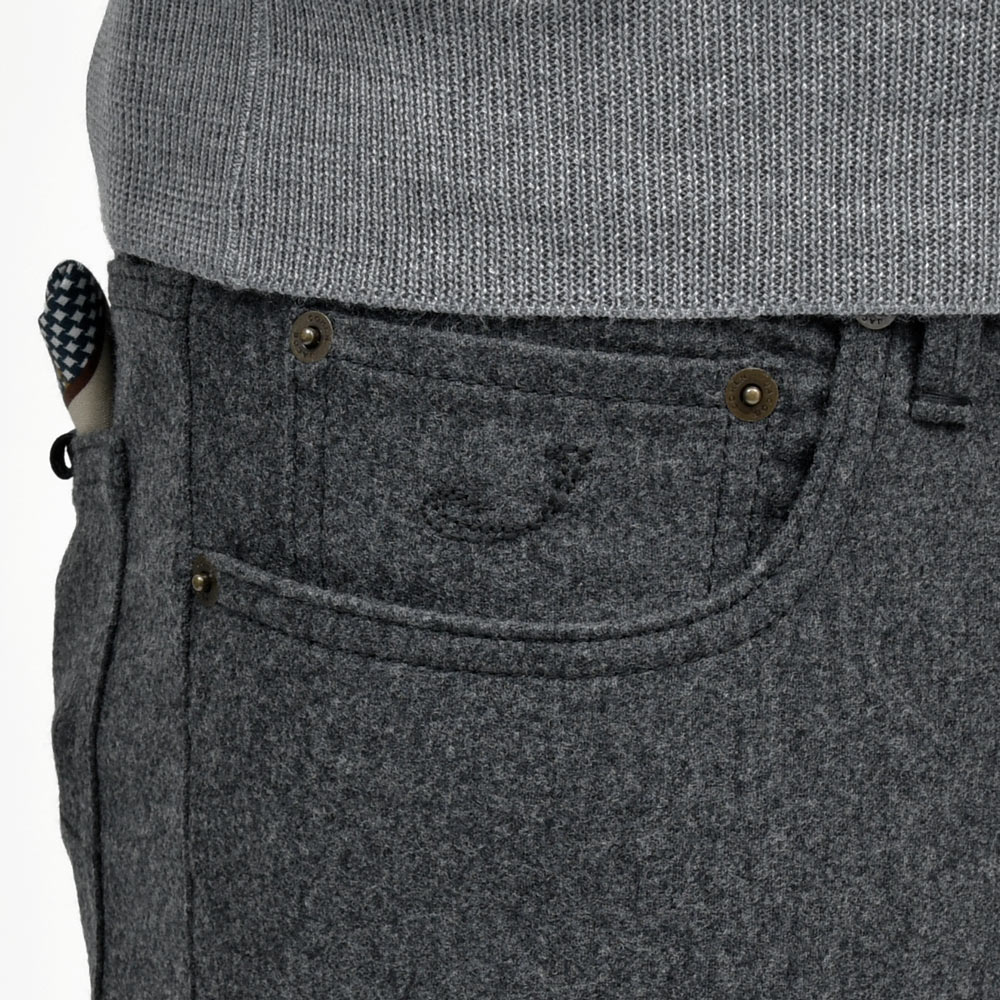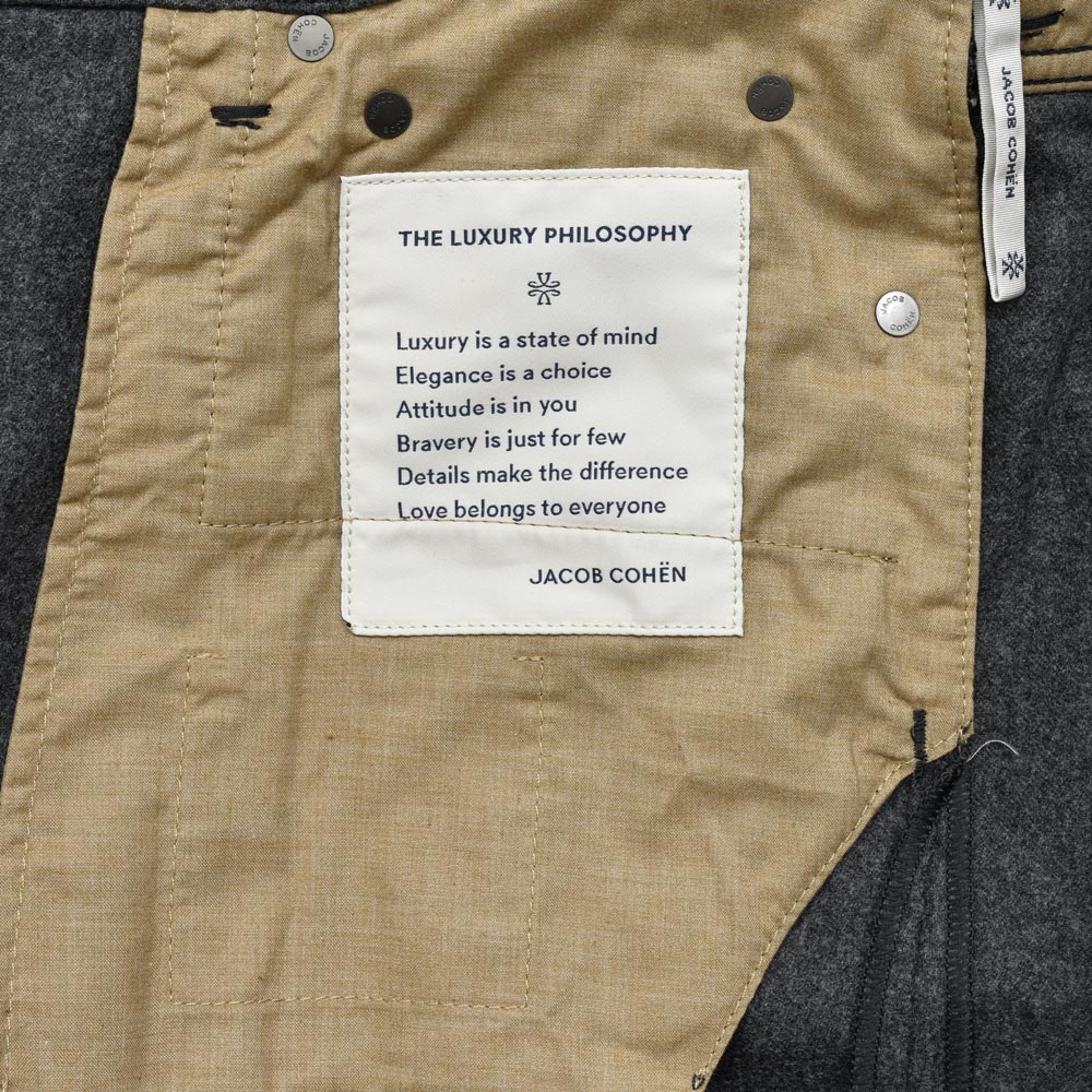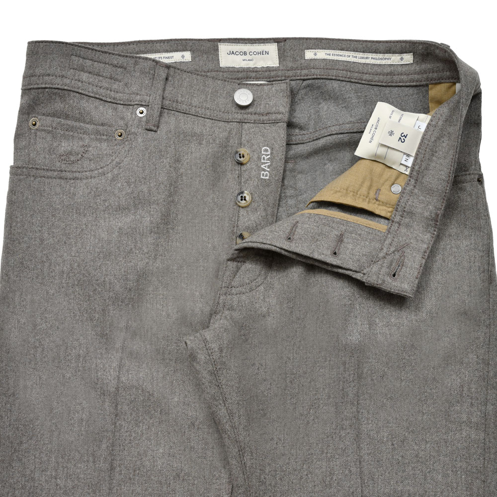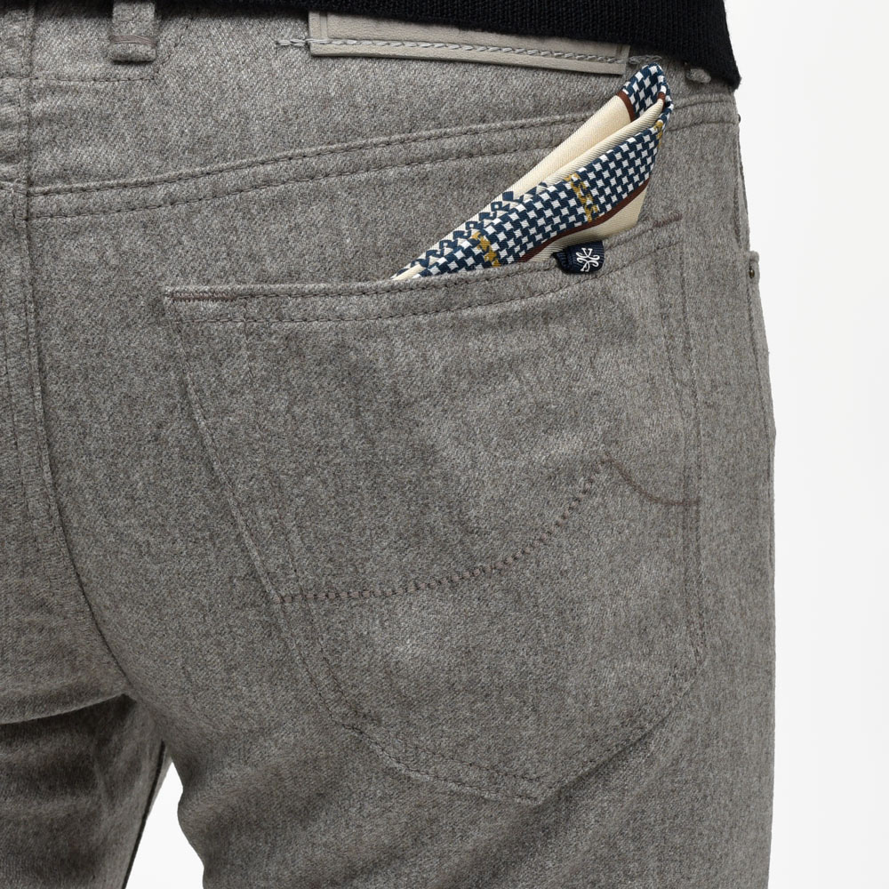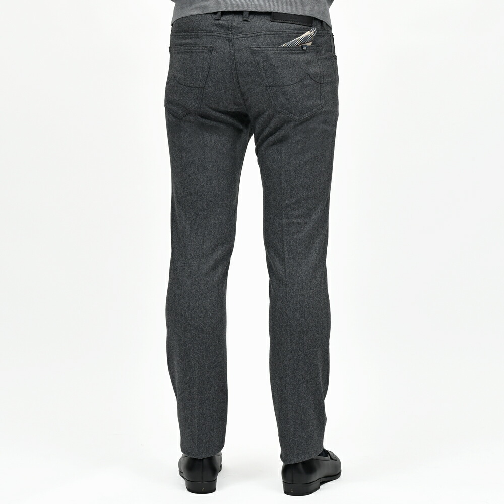 デニムブランドとして名高いJACOB COHEN(ヤコブ コーエン)ですが、こちらは上質なウールフランネルを採用した5ポケットパンツ。生地にはCANONICO社のSUPER SONICを用いており、ソフトな風合いと抜群のストレッチ性を兼ね備えています。見た目は端正ながらも穿き心地は快適で、デニムとはまた違った上品なリラックス感を味わえます。