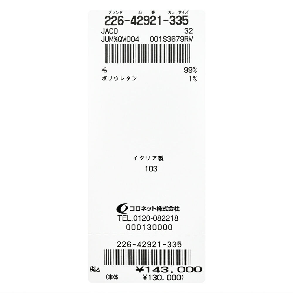 カノニコのスーパーソニックを使った秋冬の定番ですね。ウールフランネルのウォーム感とJACOBならではの美しいシルエットが上手くマッチした一本になっています。