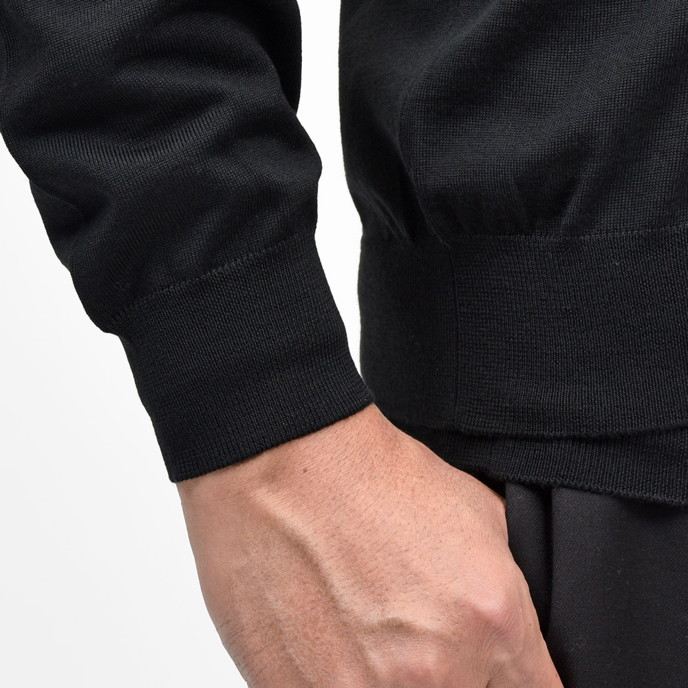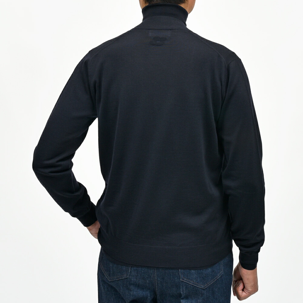 胸元ワンポイントというデザインも一般的ですが、ここ最近のトレンドですかね、後ろ身頃のネック部分に編み柄を入れるテクニック、いくつかのブランドで見かける様になりました。 さりげなくブランドの特徴を出しながら、シルエットやデザイン全体にあまり影響を与えない部位なので、手を加えやすいところではありますよね。 分かる人だけに分かる感じなので、押し出しがなくセンスが良いと思います。 スタッフ 西出 |