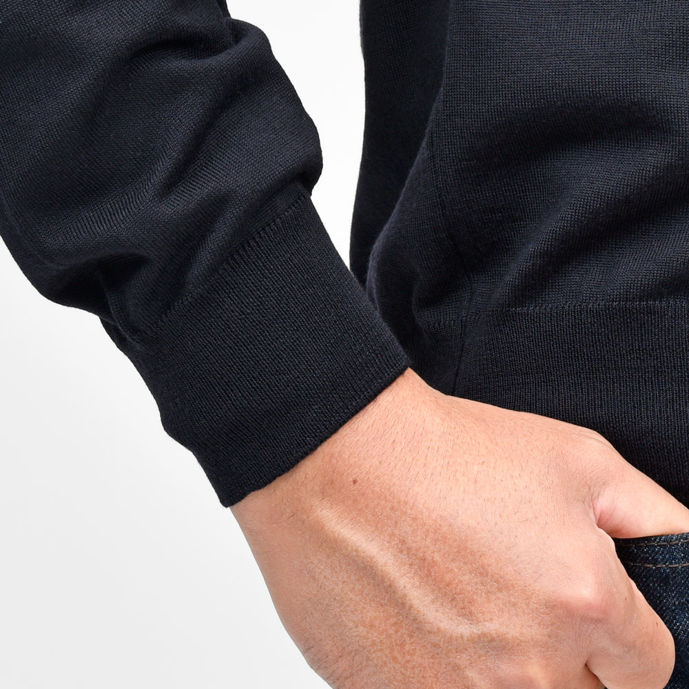 『こだわりの一手間は満足度に大きな影響を与えます。』 LARDINI(ラルディーニ)のハイゲージニット、さらりとしたスムースタッチにこだわるべくSuper120'sの糸を用い、16ゲージで編み上げたカーディガンタイプが登場しました。 このタッチはなかなか国産では見かけることがなく、イタリアブランドならではのクオリティと言えるわけですが、LARDINIはお馴染みのブートニエールの編み柄をネック部分にセットすることで更にオリジナリティのある一着に仕上げています。 ぱっと見た感じやシルエットは極めてプレーンなんですが、ロゴドンではなくさりげないアイコン使いが現代的ですね。 周囲にブランドをアピールする為のアイコンというわけではなく、自分自身の純粋なブランドへの愛情表現といいますか、自分だけが分かるサインみたいな感じで実に好印象なディティールだと思います。 (画像のスタッフは182cm、76kgでMサイズを着用しています。) |