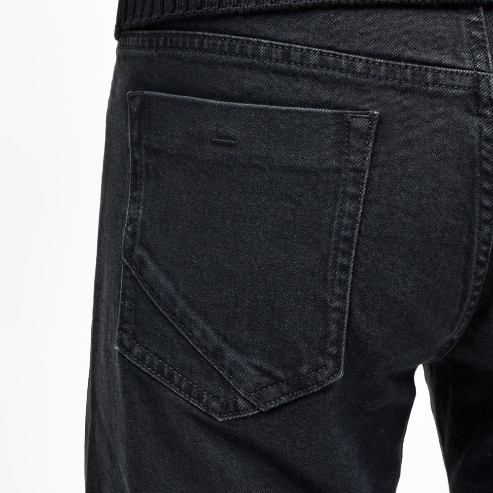 ブラックデニムタイプ、ハードな加工を加えずにクリーンに穿ける塩梅のウォッシュ感のこちら。