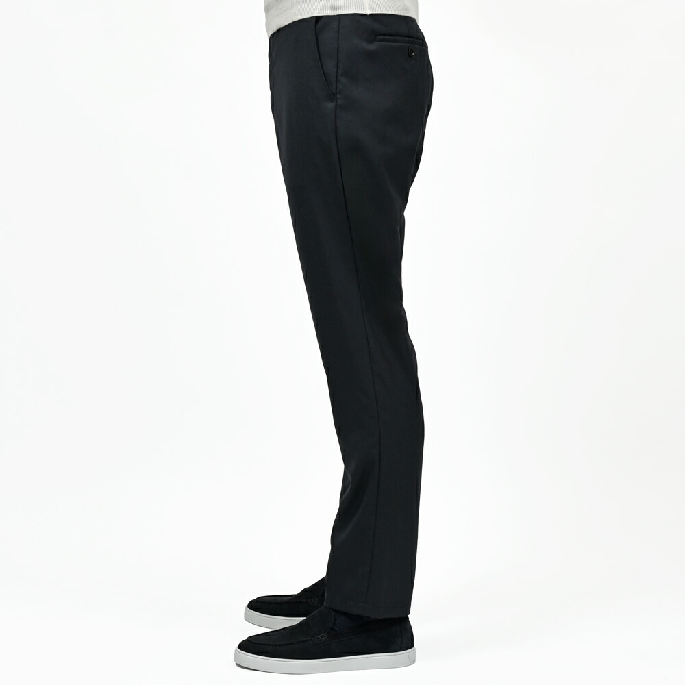 綺麗に見えてイージーでコンフォートというのはオールマイティに使えるパンツとして必須の要素です。もちろん、本格仕立てのスラックスには上品さは及ばないですし、デニムやワークパンツ、スポーツウェアに比べると機動力は劣ります。