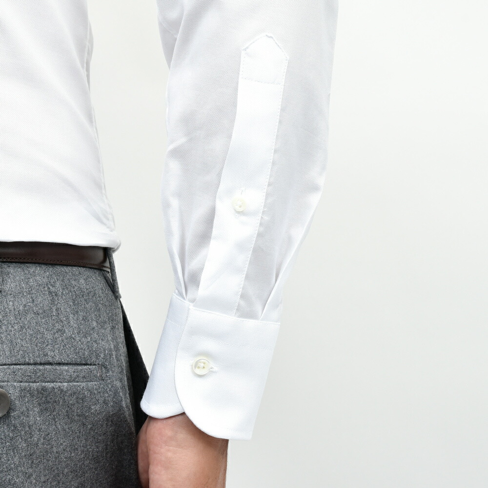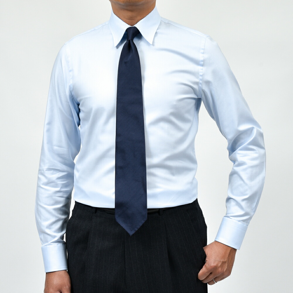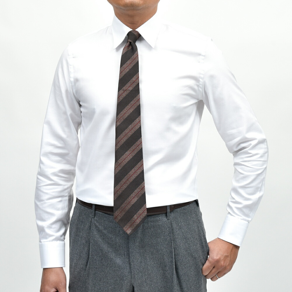 レギュラーカラーはタイドアップした際のVゾーンをすっきり見せ、控えめながらも知的な印象を演出してくれます。