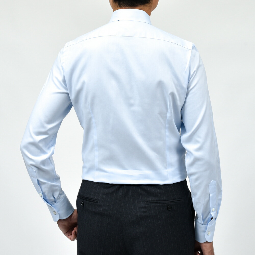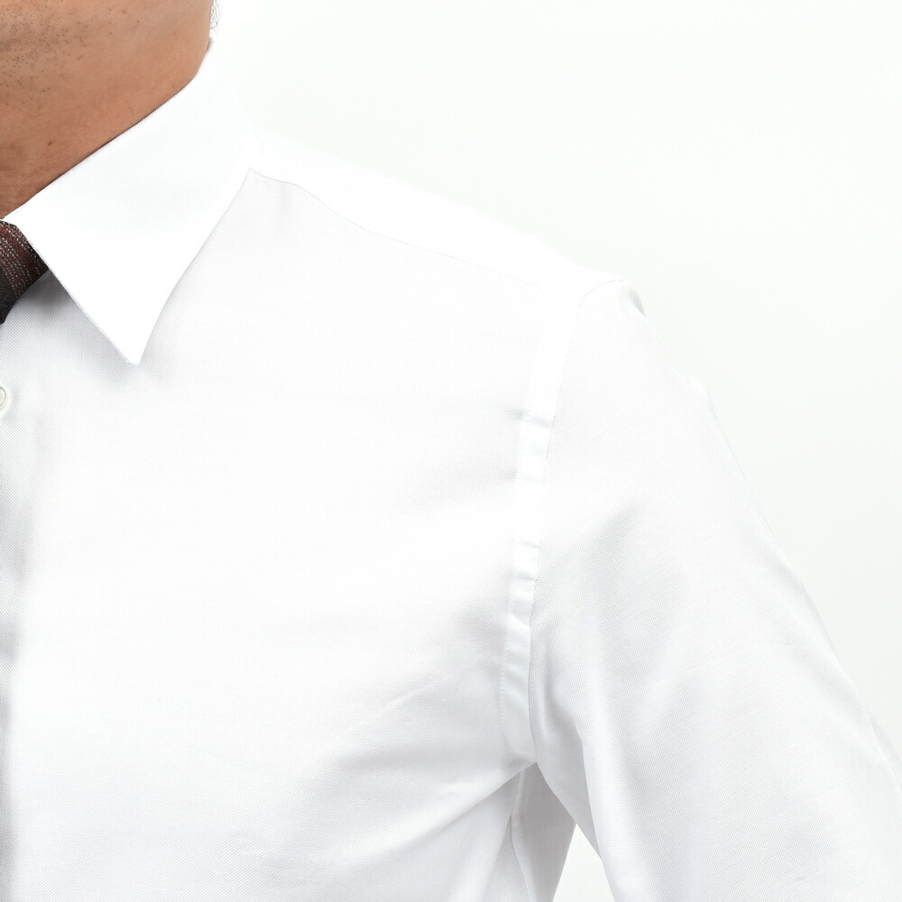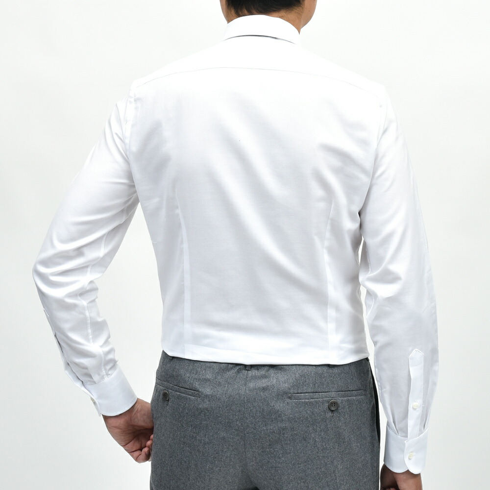 ビジネスシーンはもちろん、ジャケットスタイルにも自然に馴染む、長く愛用できる定番シャツです。