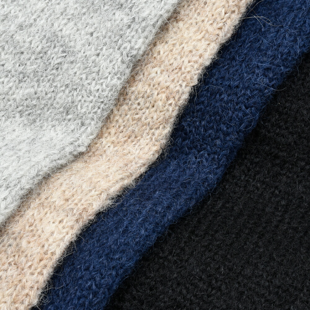 上質なペルー産のアルパカを採用、ミニマルなデザインだからこそより素材の良さが引き立つ印象になっています。