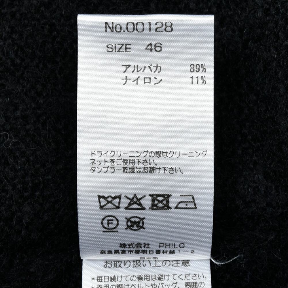 最近のミニマルスタイルな傾向からニットもサラリとしたタッチが多く提案されていますが、こちらはふっくらとしていて、程良く毛足がありウォーミーな印象ですね。ニットといえばこんな感じといいますか、正統派な雰囲気であり、ウールではなくアルパカが用いられているところがポイントです。