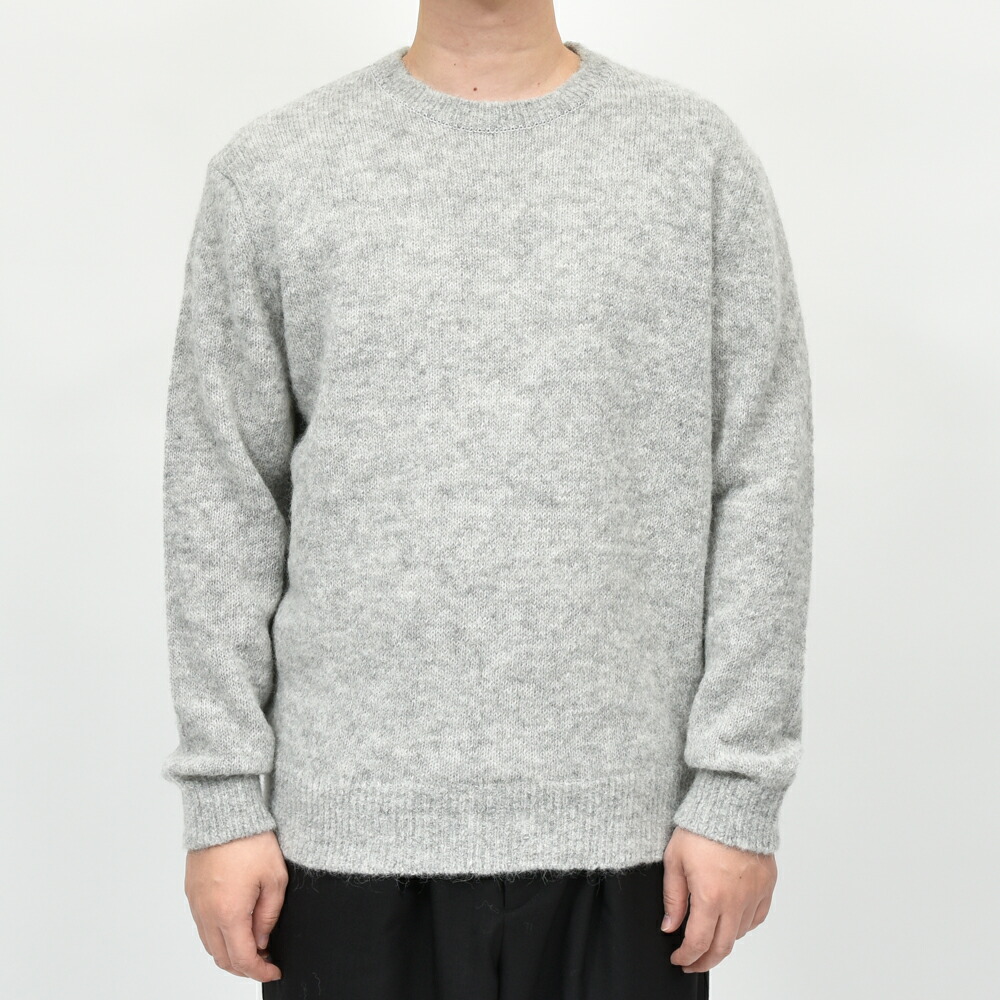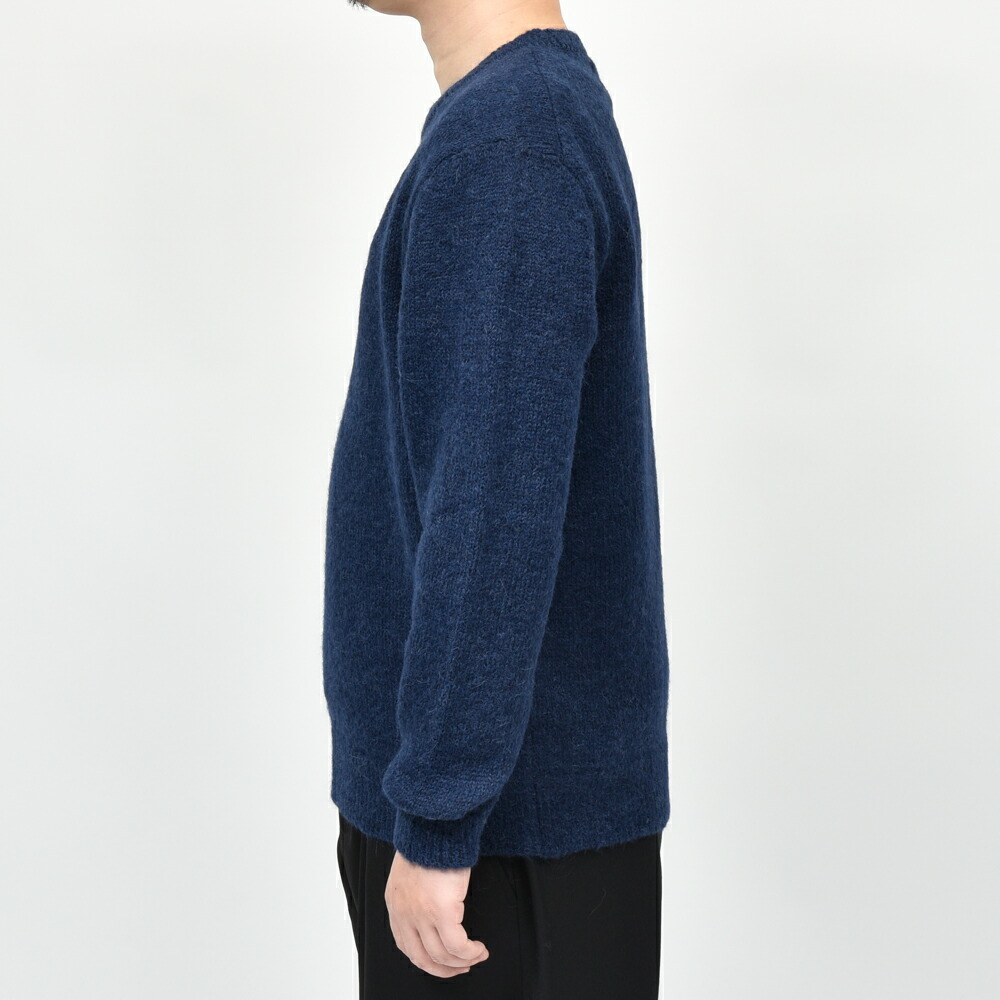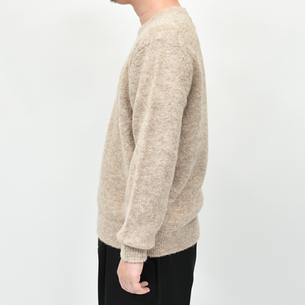 スマート過ぎず、オーバー過ぎず、中庸なバランスで仕立てられたアルパカニット。シャギー感もありますが、そこまでゴリゴリの感じでもなく非常に良いバランスになっています。