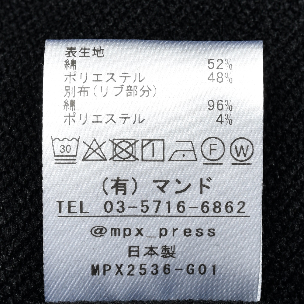 : 表生地:コットン52%ポリエステル48%別布(リブ部分):コットン96% ポリエステル4%