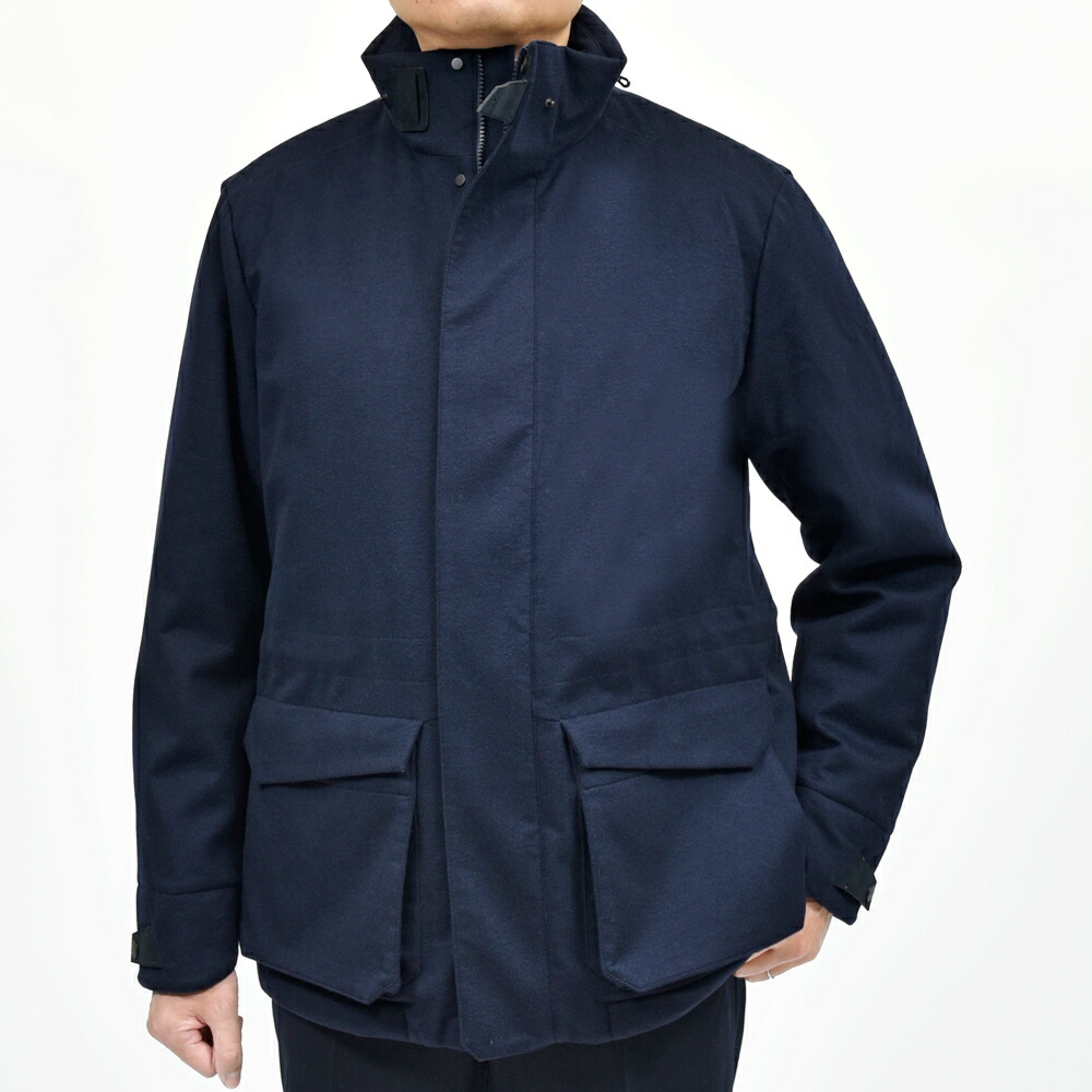 SEASE(シーズ)の“UPTOWN JACKET”、ブランドが定番的に用いている透湿防水機能を持たせたカシミアファブリックを用い、贅沢にフィールドジャケット型で仕立てた一着です。