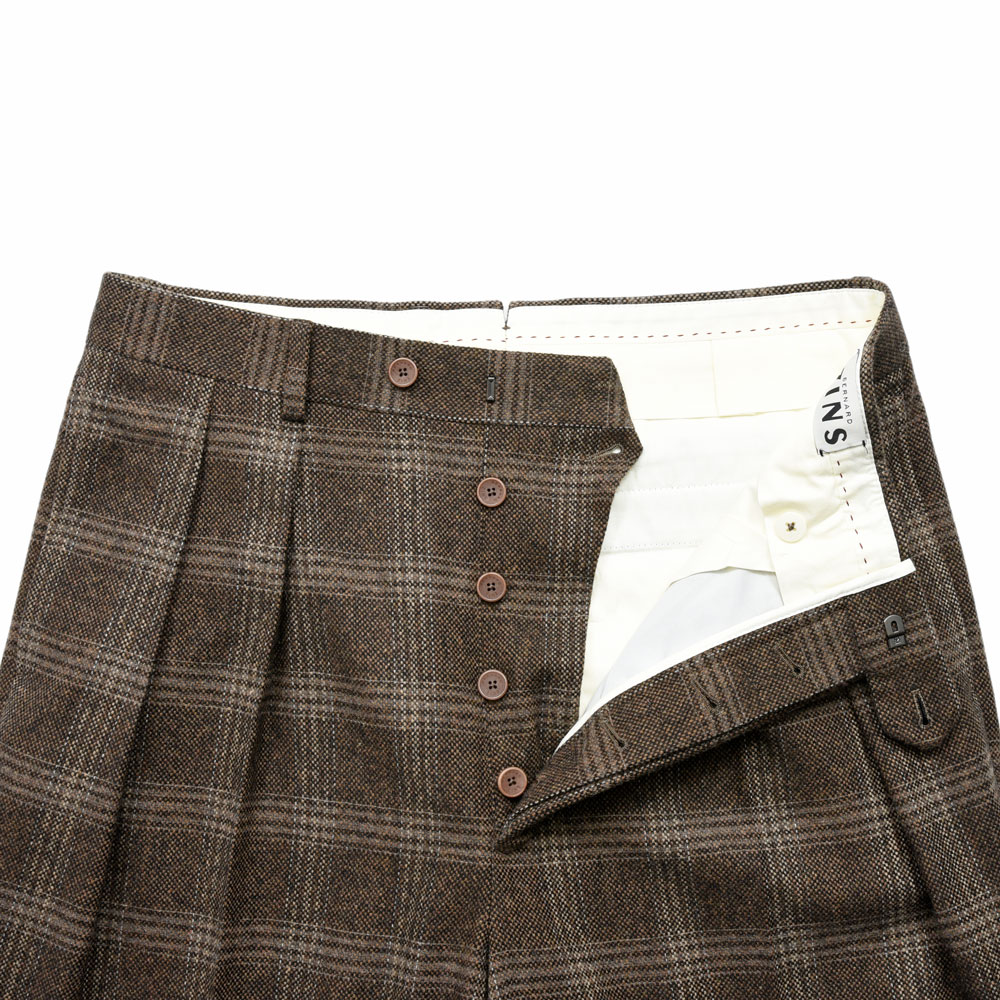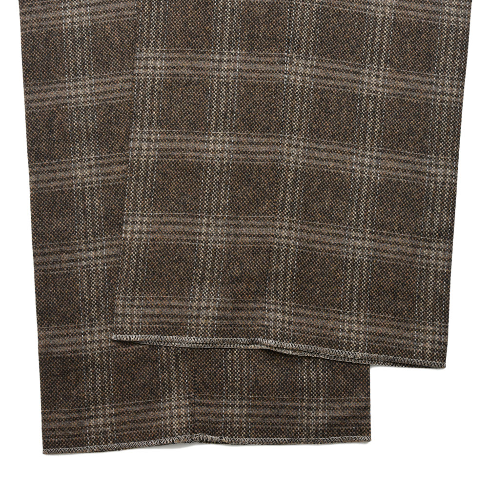 生地はライトツィードのチェックになっていまして、ブラウンをメインカラーにブラックを混ぜたものになっていまして、温かみがありつつ程よくキリッとさせた塩梅になっています。
