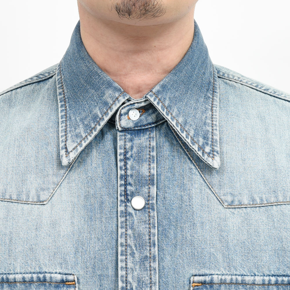 ウォッシュは比較的ハードではありますが、いわゆるアメカジ的なムードにならないのは襟のバランスやシルエットに寄るところが大きのかなと。