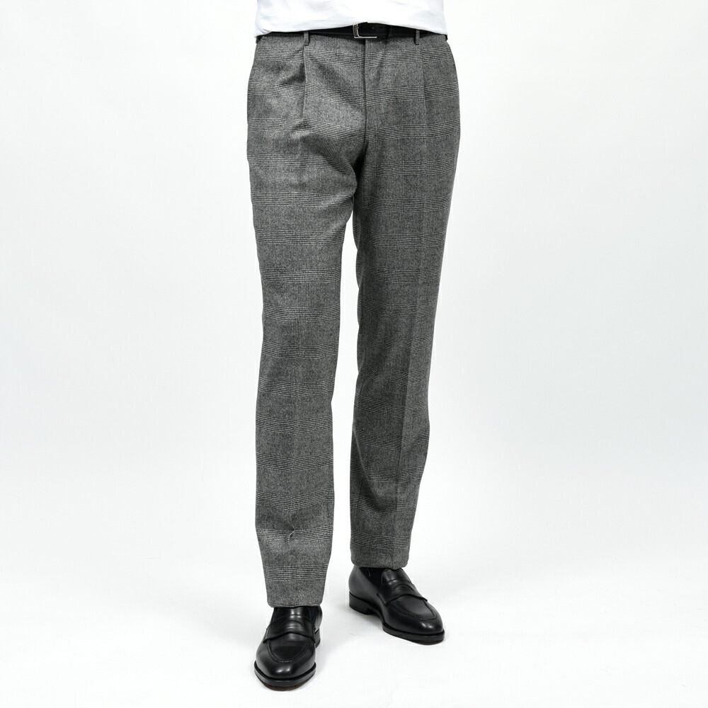 ウールカシミヤグレンチェック1プリーツパンツ / テーパード 13052204059