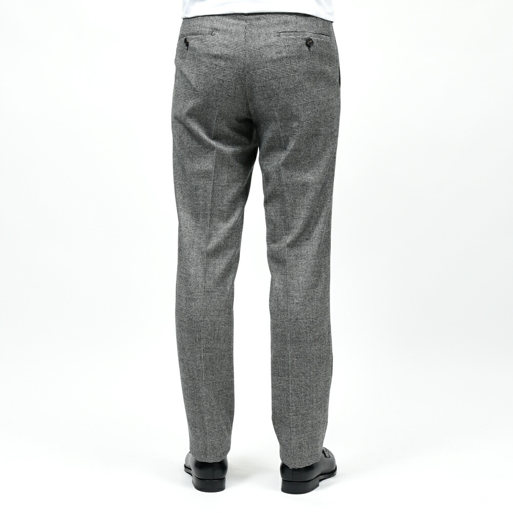 ウールに少量のカシミヤを加えた生地は、しなやかな触感と奥行きのある表情が魅力で、グレンチェック柄の上品さがより一層引き立ちます。