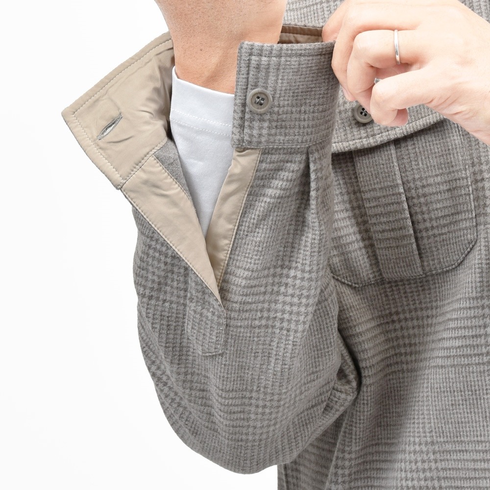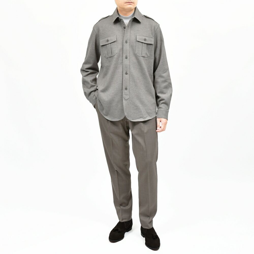SEASE(シーズ)らしいデイリーウエアと言える一着かもしれません、上質なウールを用いた伸縮性のあるフランネルジャージを使用、柄にはオーセンティックなグレンチェックを採用し、発色なグレイッシュなベージュカラーになっています。