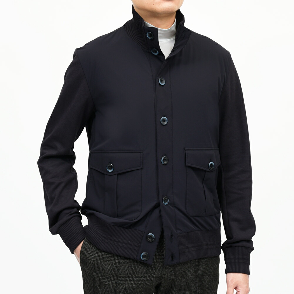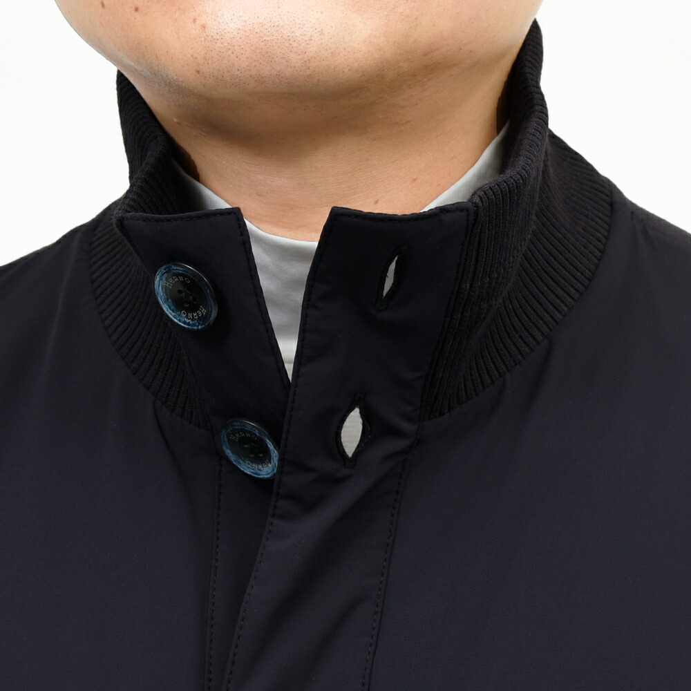 HERNO(ヘルノ)が得意とするハイブリッドデザイン、クラシカルなドライバーズブルゾンタイプ、通称“バルスタータイプ”のスタンドカラーブルゾンです。