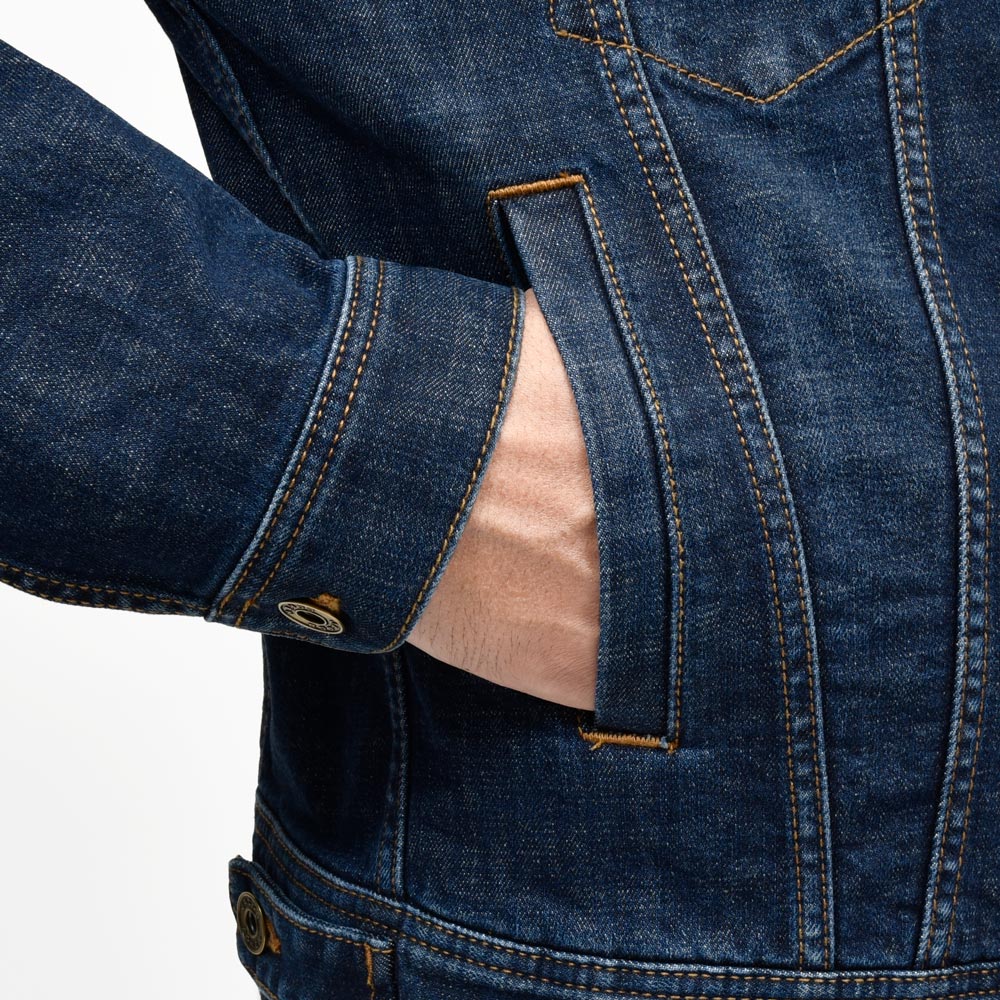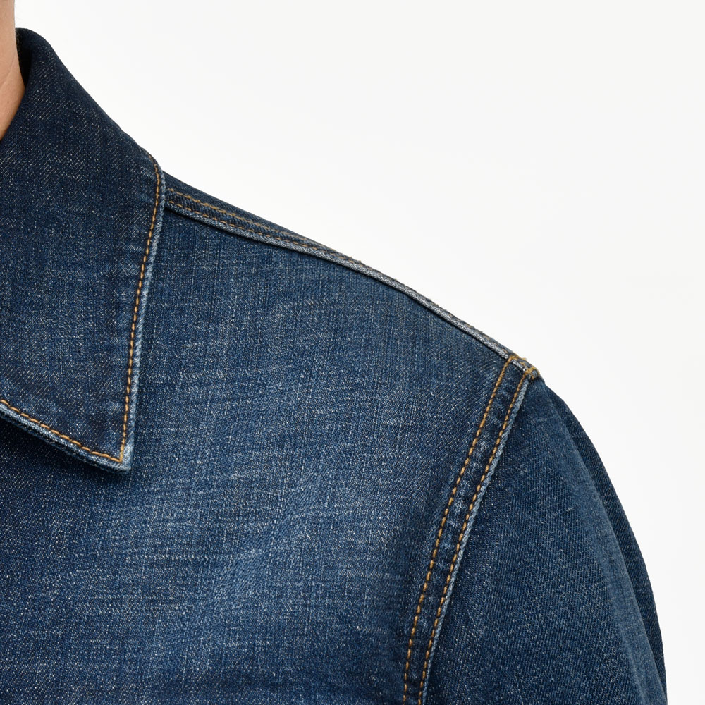 11オンスデニムを用いたトラッカージャケットは全体に洗いをかけながらも自然な色落ちを実現していまして、とても落ち着いたヴィンテージ感が漂います。こちらは酵素を使ったエンザイムウォッシュ加工による仕上げで、柔らかさと味わい深い表情を兼ね備えているのが特徴です。随所に見られる程よいフェードが着込むほどに愛着を深めてくれる雰囲気を生んでいます。