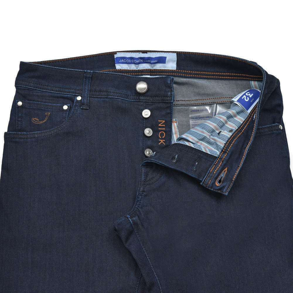 JACOB COHEN(ヤコブコーエン)のシンプルながらもこだわりが詰まった一本、洗いの雰囲気は比較的ベーシックでワンウォッシュのみの濃いめのタイプになっていまして、非常に汎用性の高いものになっています。