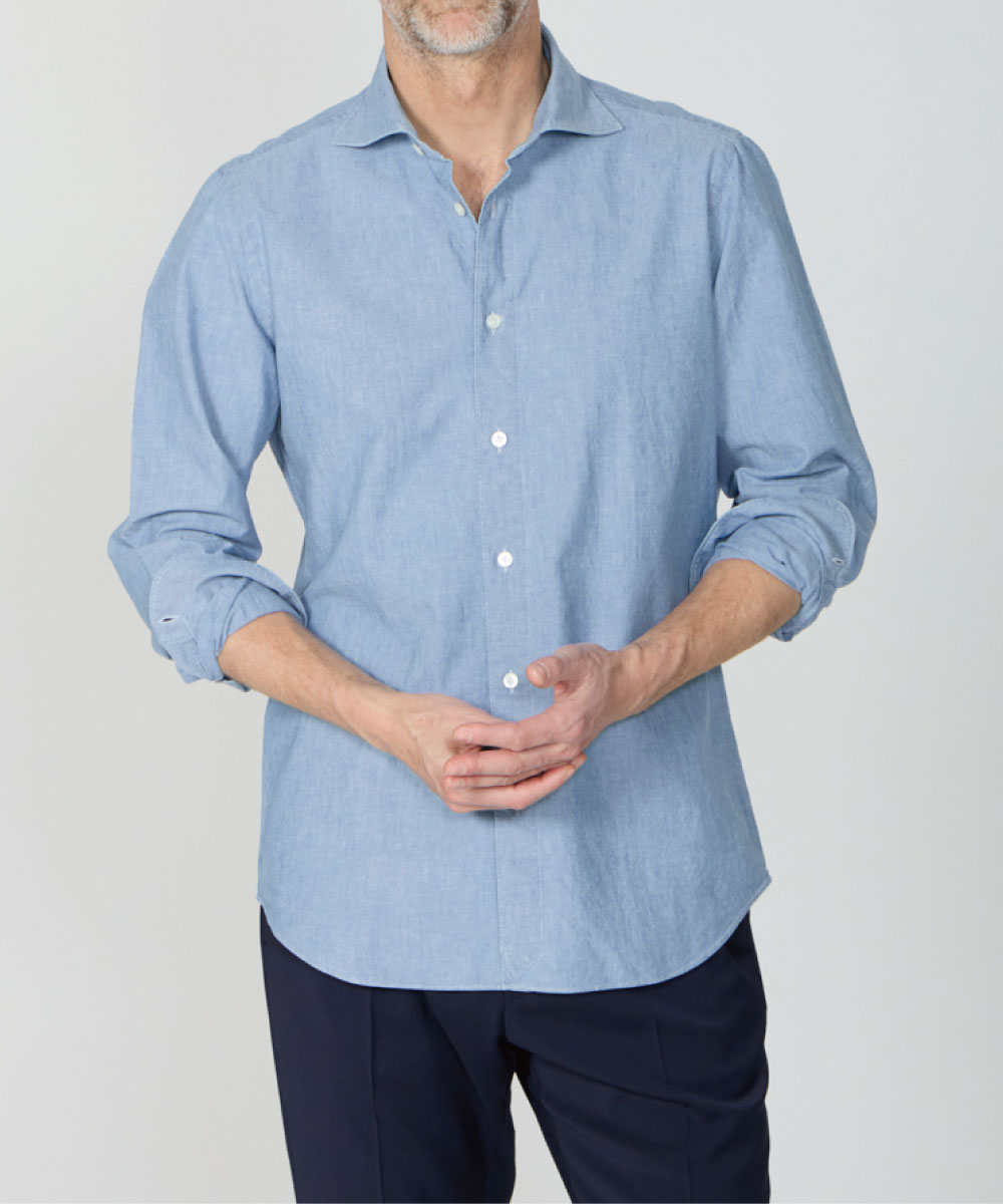 Finamoreではドレス調の生地でカジュアルシャツを仕立てることが多いですが、こちらはなかなか良い塩梅で、生地が薄すぎないところが良いですね。