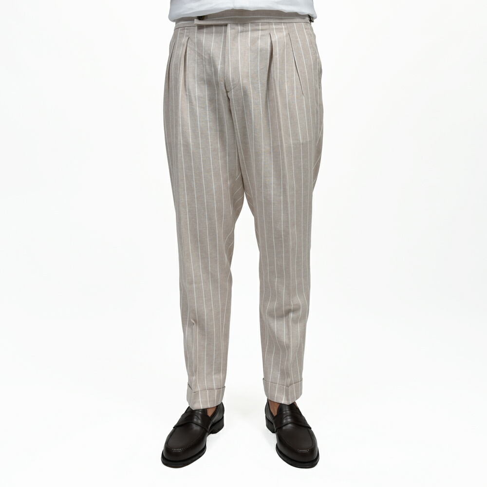 SCOTCHスコッチ リネンレーヨンストライプ2インプリーツクロップドパンツ BE261UASCOTCHGT1235 13065001039