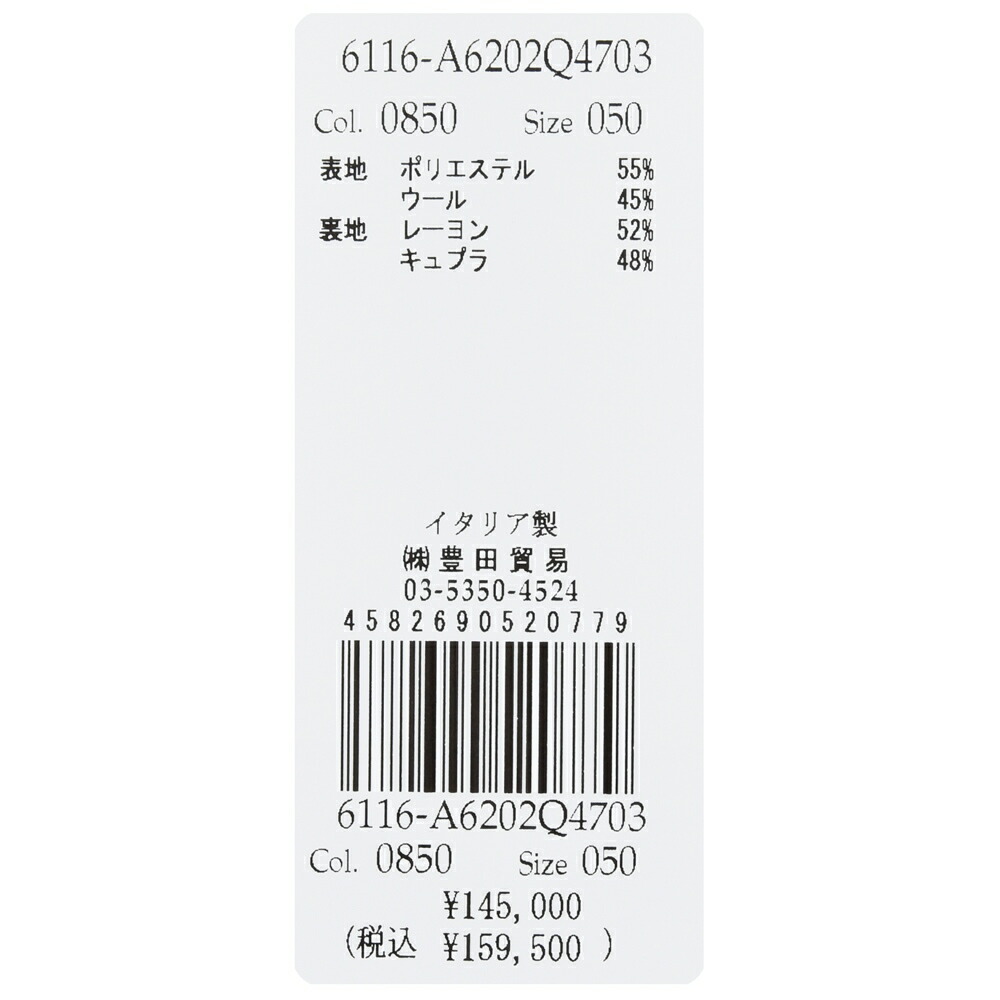 : 表地:ポリエステル55% ウール45%裏地:レーヨン52% キュプラ48%
