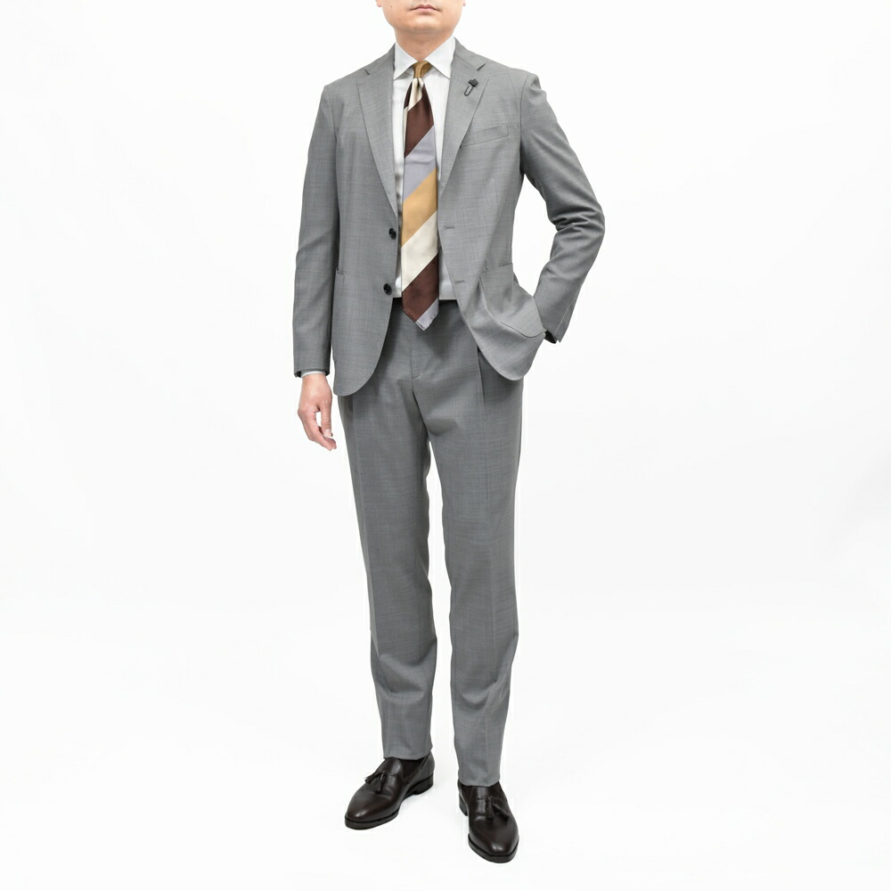 すっきり着られるシルエットでエレガントなルックス、インターナショナルに通じる端正なスタイルで、それでいてイタリアらしい色気も備わっているLARDINIのスーツ。仕立ての良さを存分に感じていただける素晴らしいクオリティです。