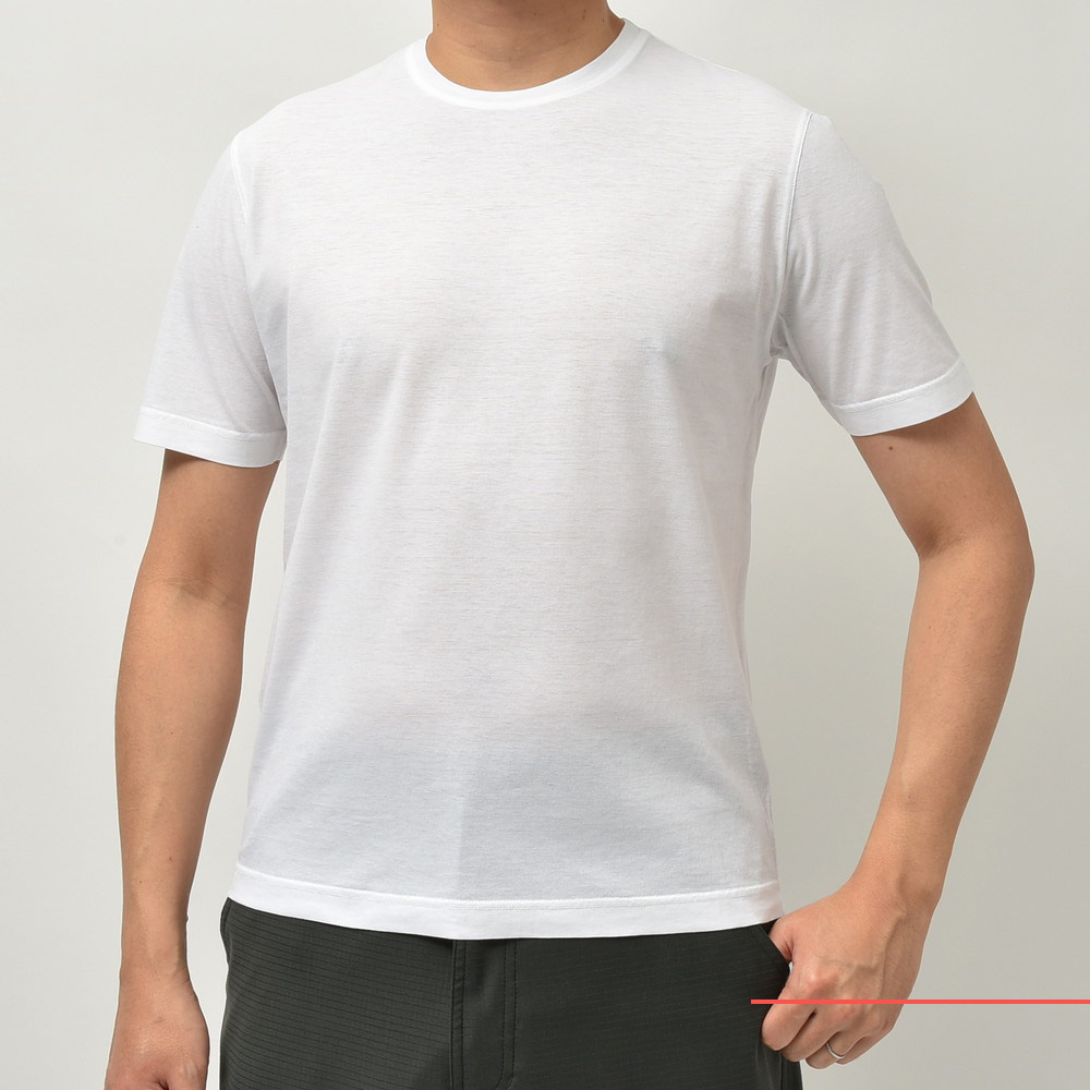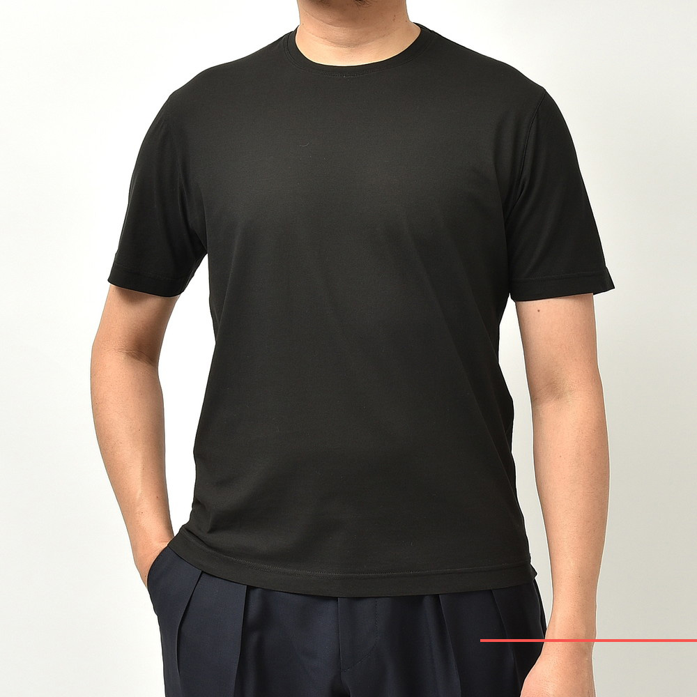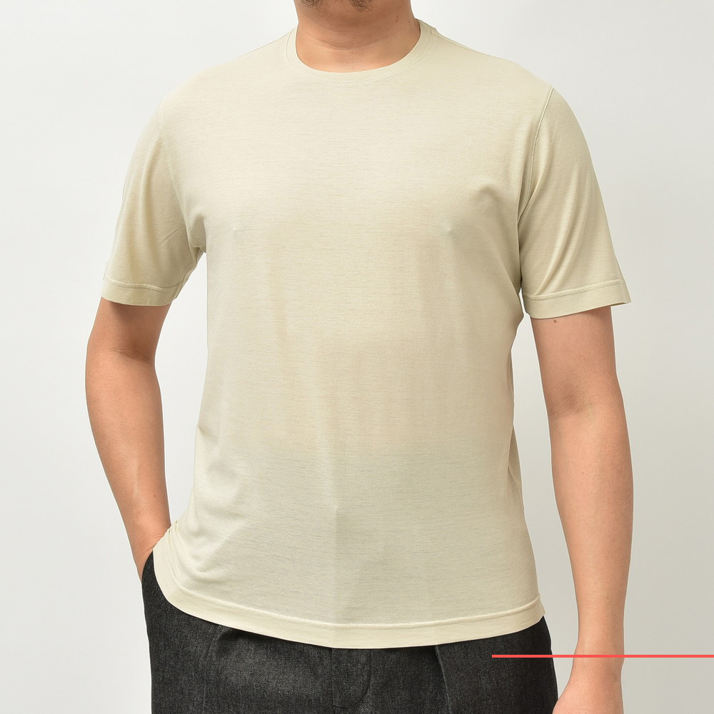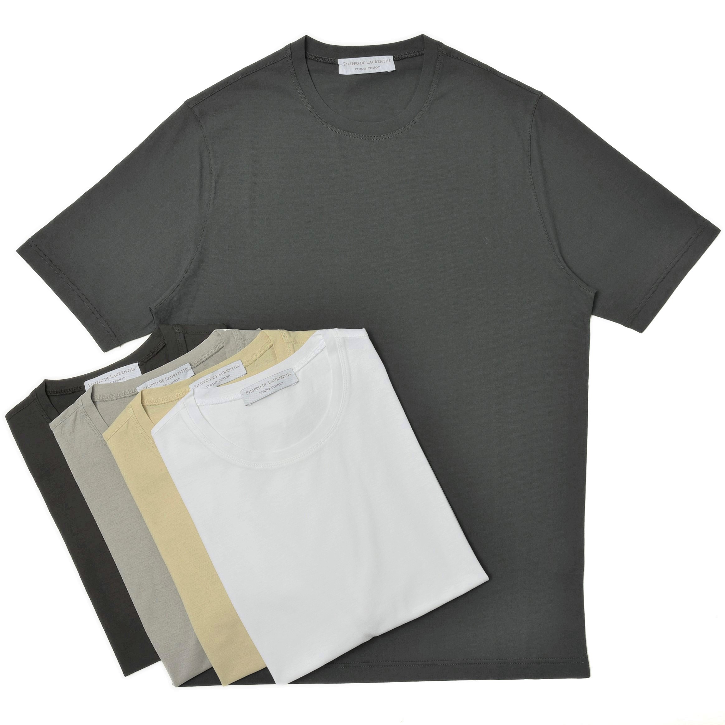 FILIPPO DE LAURENTIIS(フィリッポ デ ローレンティス)が提案するベーシックなカットソーはドライタッチで清涼感のあるコットンクレープ素材を採用、肌への張り付きが無く快適に着られるという事で人気の高い一着です。