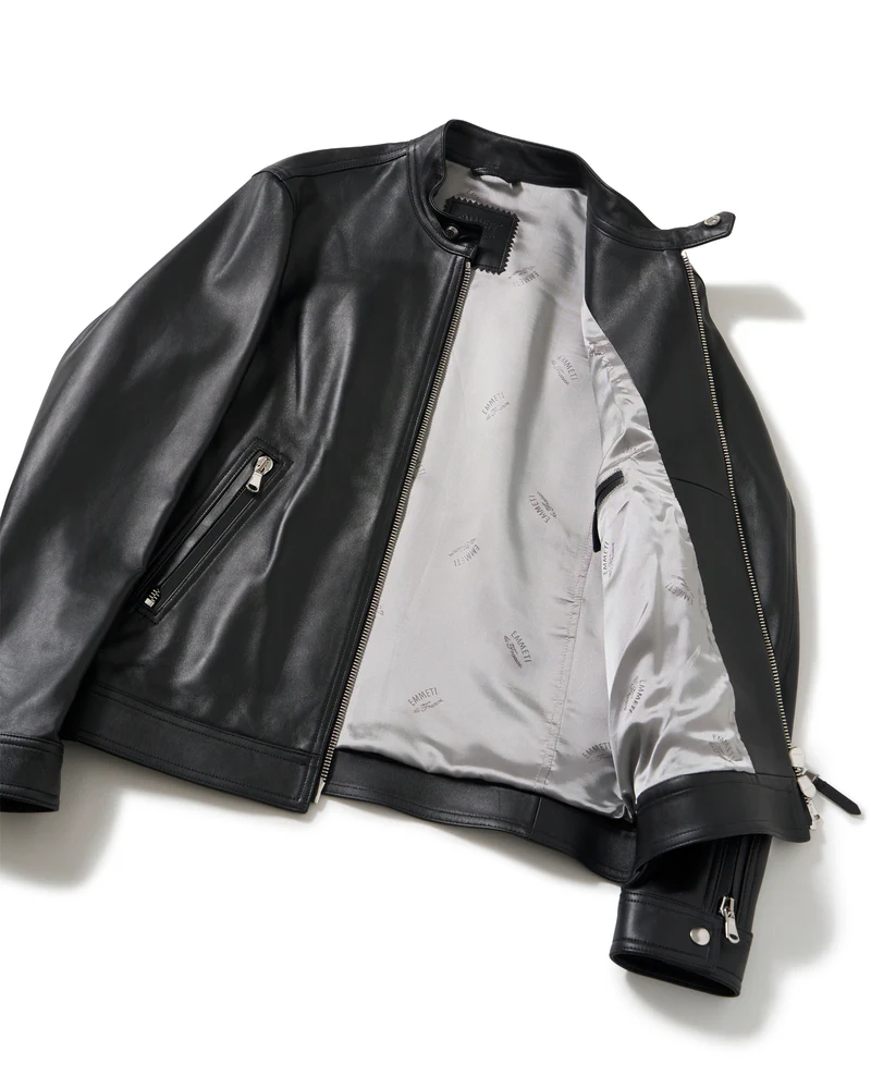 クラシカルなレザーライダースをスマートな印象に仕上げた同ブランドらしい一着となっています。