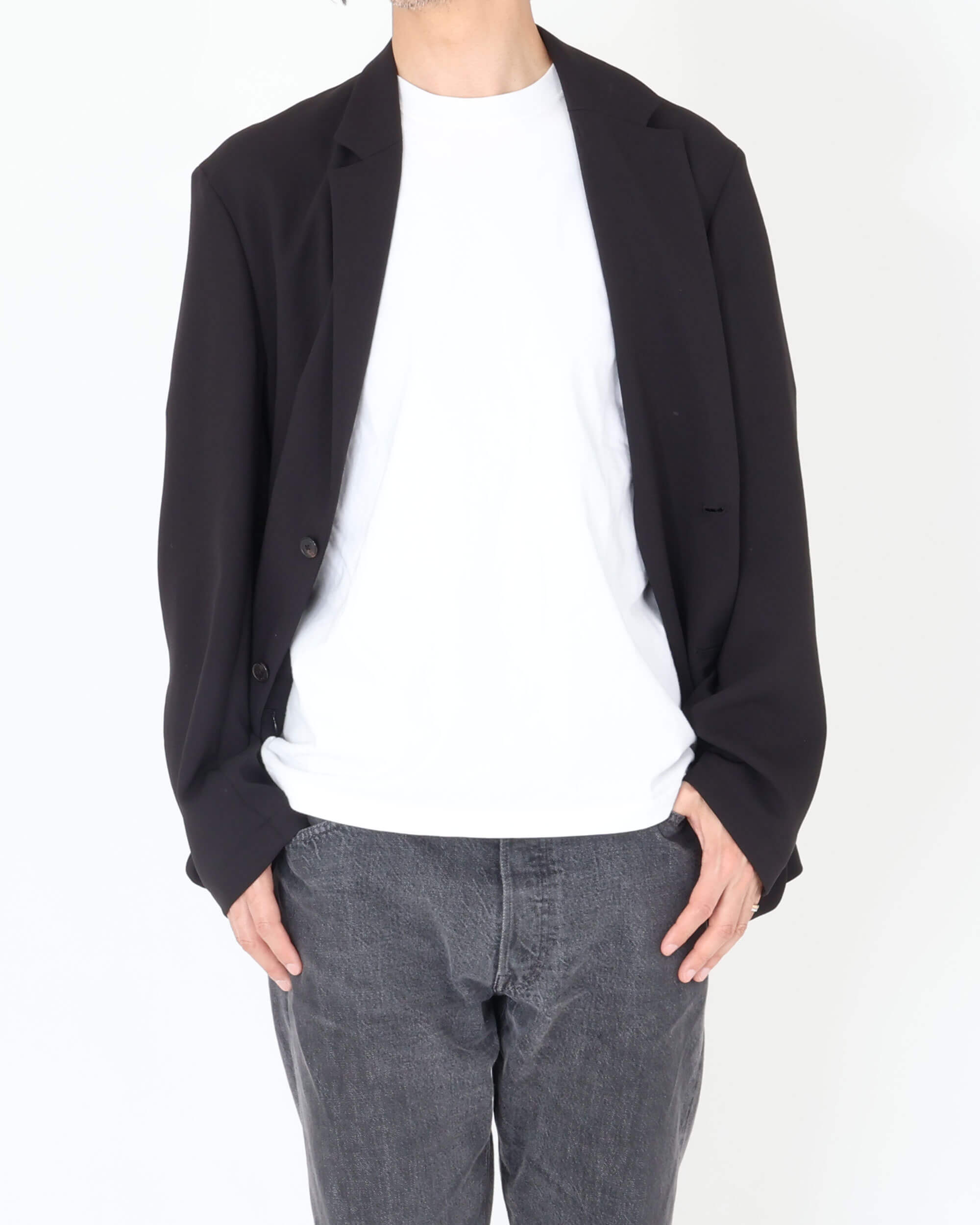 こちらは、テーラードスタイルにゆとりを持たせたリラックス感のある一着。