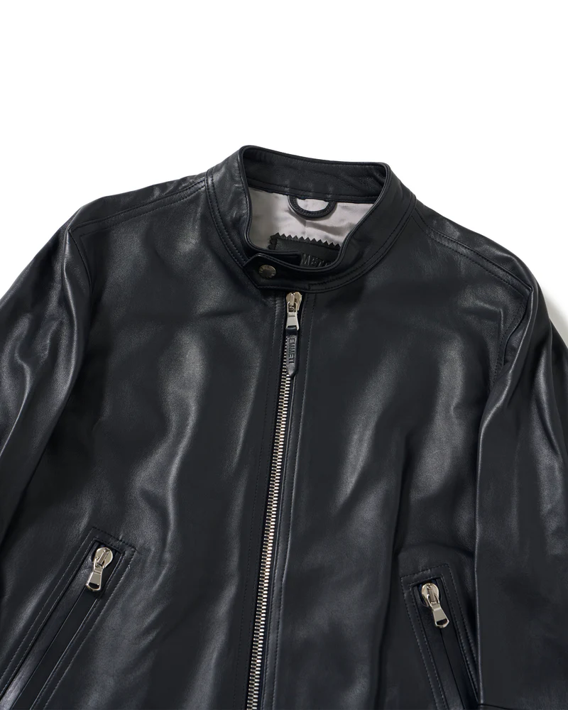 エンメティ / MASSIMO(マッシモ) シルバーZIP SPラムレザー シングルライダース / ダークネイビー