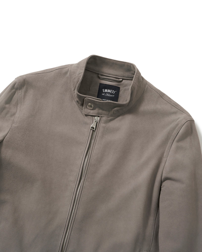 カラーは、柔らかな光を含んだサンドベージュ。単色でありながら奥行きを感じさせるニュアンスとなり、スエードらしい表情を楽しめる一着となっています。