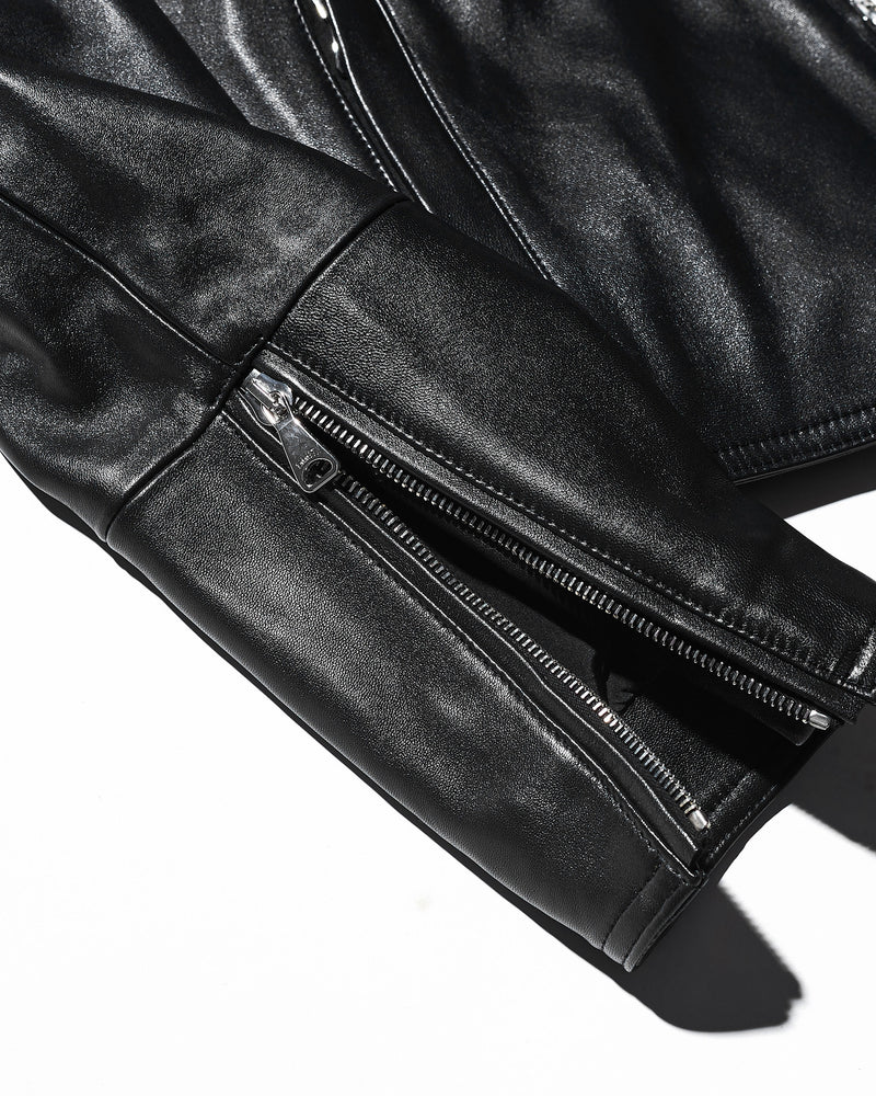 エンメティ / H UOMO(アッカウォモ) シルバーZIP ナッパチェラータ ラムレザーシングルライダース / ブラック