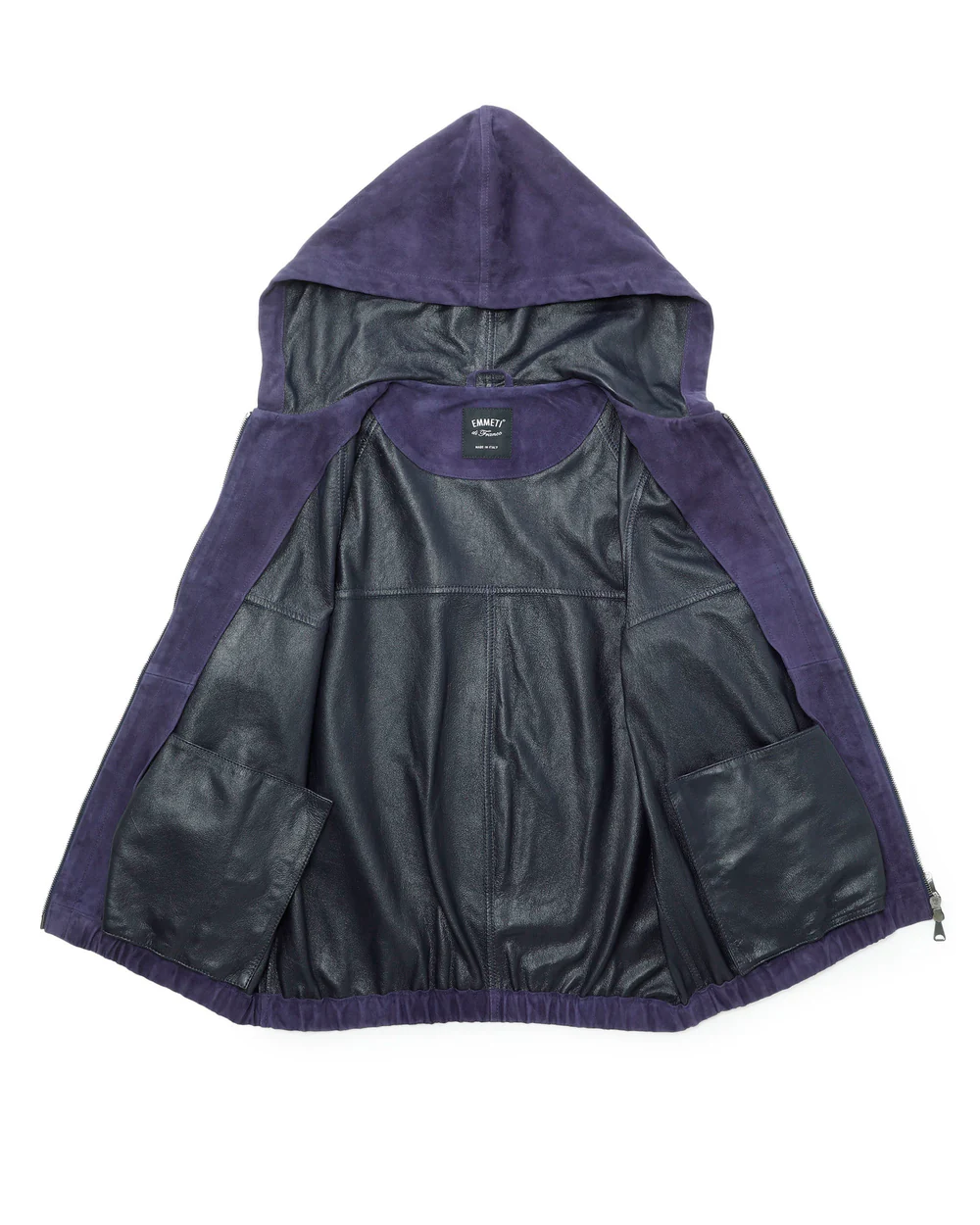 裏地による誤魔化しが効かないアンライニング仕様は、縫製箇所や端の処理に熟練の職人による精緻な手仕事が求められ、細部まで徹底された始末の美しさは、高い技術力を誇るEMMETIらしい仕上がりとなっています。